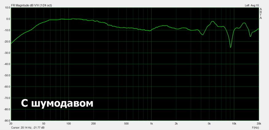 Микрофоны шумоподавления расположены снаружи. Шумодав добавляет громкости, немного шумит сам и изменяет частотную характеристику. Это хорошо заметно на приведенных ниже графиках.