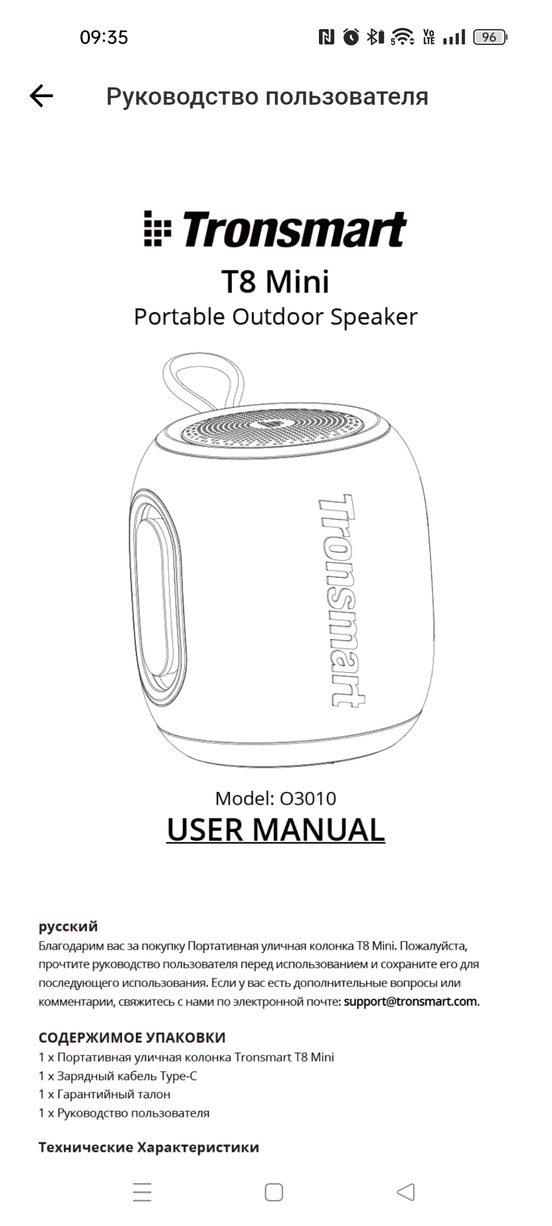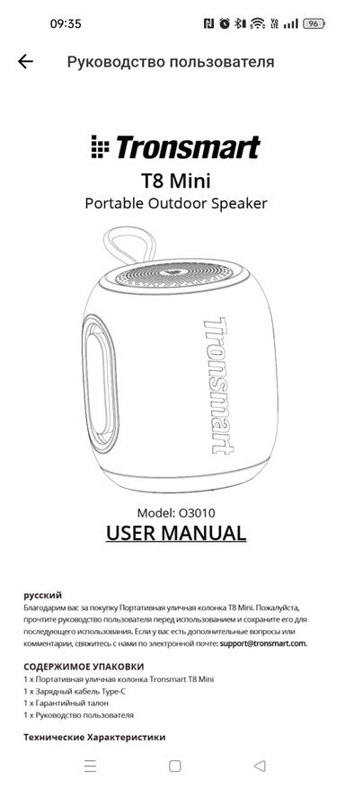 Про комплектный проводок зарядки чего-то нового сказать не могу. Он есть и он стандартный. Руководство пользователя тоже стандартное, но стандартное для Tronsmart, где все подробно описано и рассказано, что и для чего следует делать.