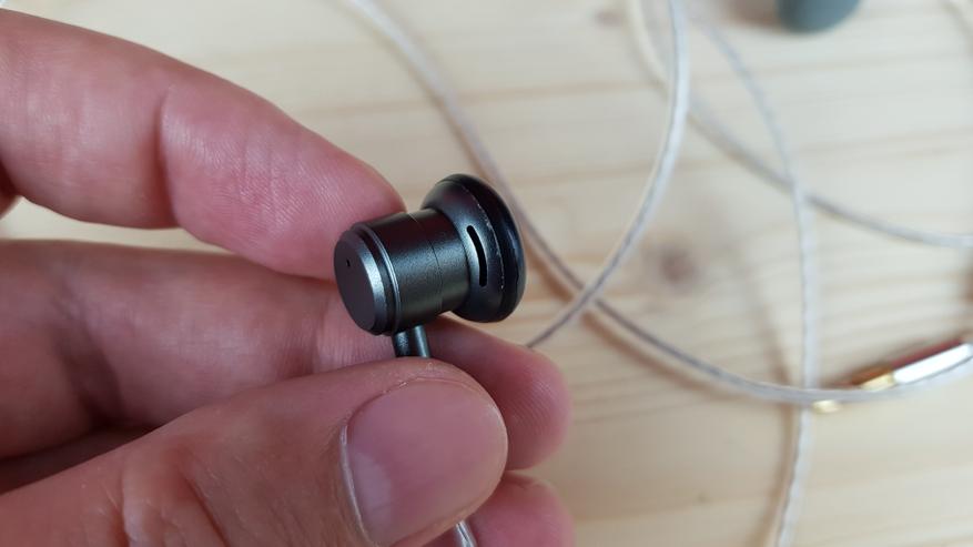 Вообще, корпус NiceHCK ME80 практически полностью выполнен из металла, за исключением черного ободка, касающегося уха.
