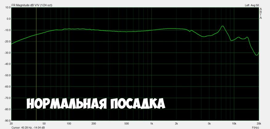 На деле же мы имеем открытую конструкцию, в которой плотного прилегания достичь практически невозможно. Из-за чего, как видно по графику, мы получаем достаточно линейную АЧХ, с горбами лишь на верхних частотах.