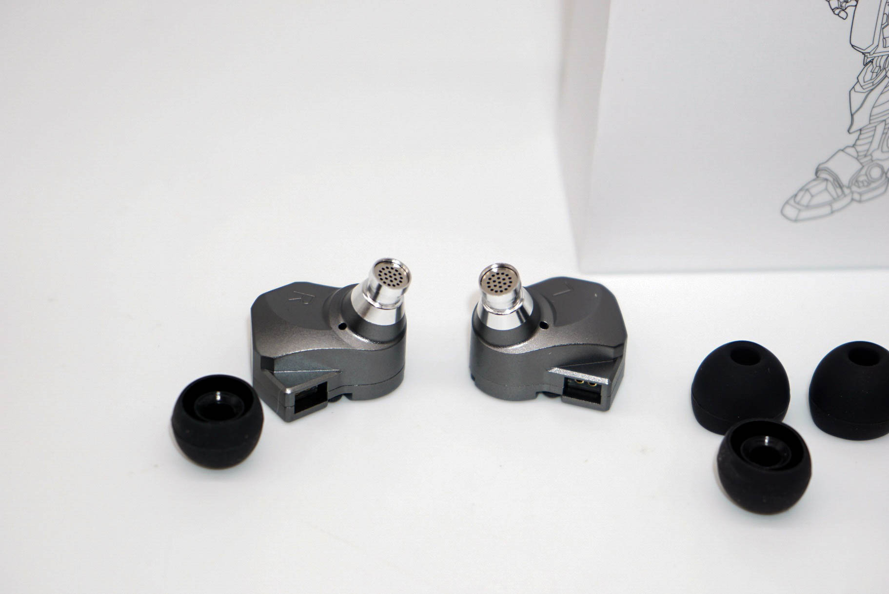 Внутри привычный динамический драйвер (по 1 шт на наушник), который отличается специфической катушкой типа Copper-Clad Aluminum Wire с мощным неодимовым магнитом (N52). Настройка звука классическая V-образная, басы ощущаются, но не преобладают — есть определенный баланс частот, но звучание без «искорки», усредненное. Как такового акцента на ВЧ нет, но верхний диапазон получается в меру детальный. Конечно, можно воспользоваться штатным эквалайзером смартфона или ЦАПа для более кастомной настройки, и такой вариант оказывается универсальным: наушники C2 Mech Warrior от TinHiFi вполне подходят для электронной музыки и рок-композиций.