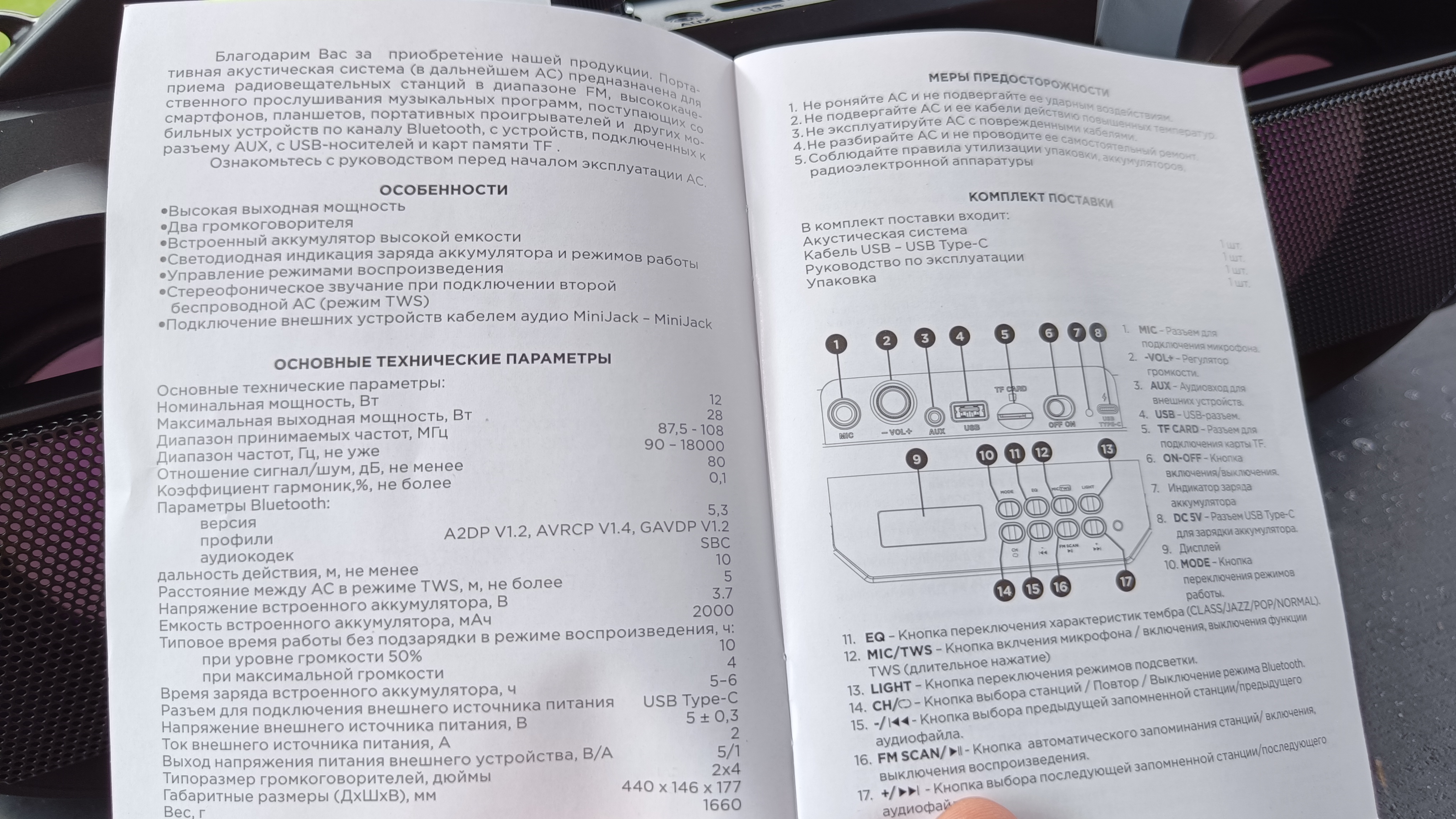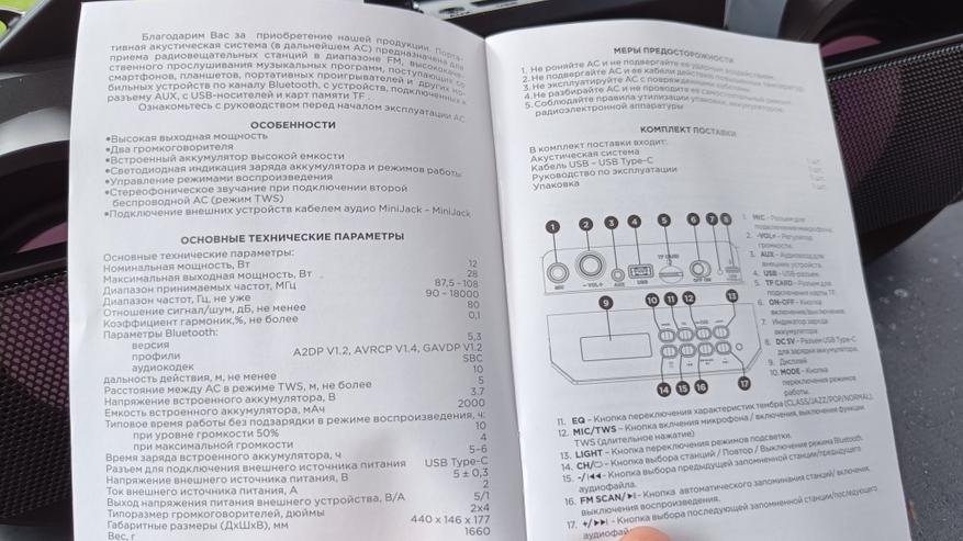 В комплект поставки входит бумажная инструкция и провод питания USB Type-C, который может послужить антенной во время включения FM-радио.