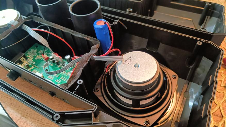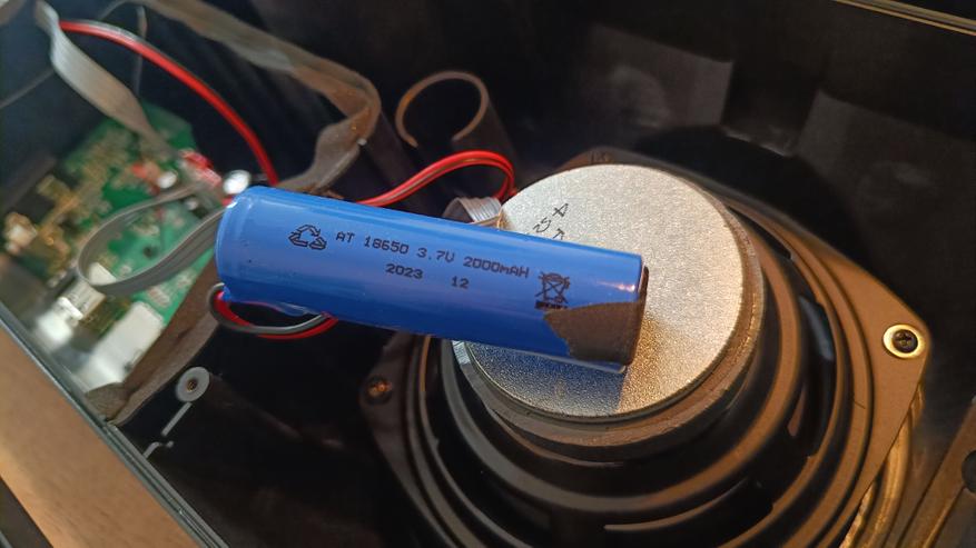 Портативная колонка питается от одного элемента 18650, хотя внутри масса свободного пространства. Увеличить емкость не составит труда, а значит, автономность можно увеличить в разы.