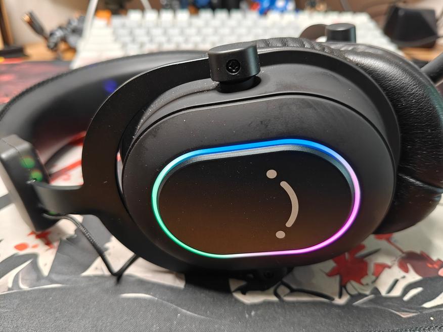 У производителя имеется три версии данной гарнитуры: белая, черная и розовая. Последняя явно ориентирована на девушек-геймерш и выглядит интересней всех, но розовый мне не идет ). В моем случае корпус наушников изготовлен из черного матового пластика, на тыльной части чашек имеется rgb подсветка. Честно говоря думал будет раздражать, но она отлично вписывается в общий вид. Но чего не хватает, так это возможности ее отключить, хотя думаю тот кто не переносит все эти огоньки, купит что-то другое.