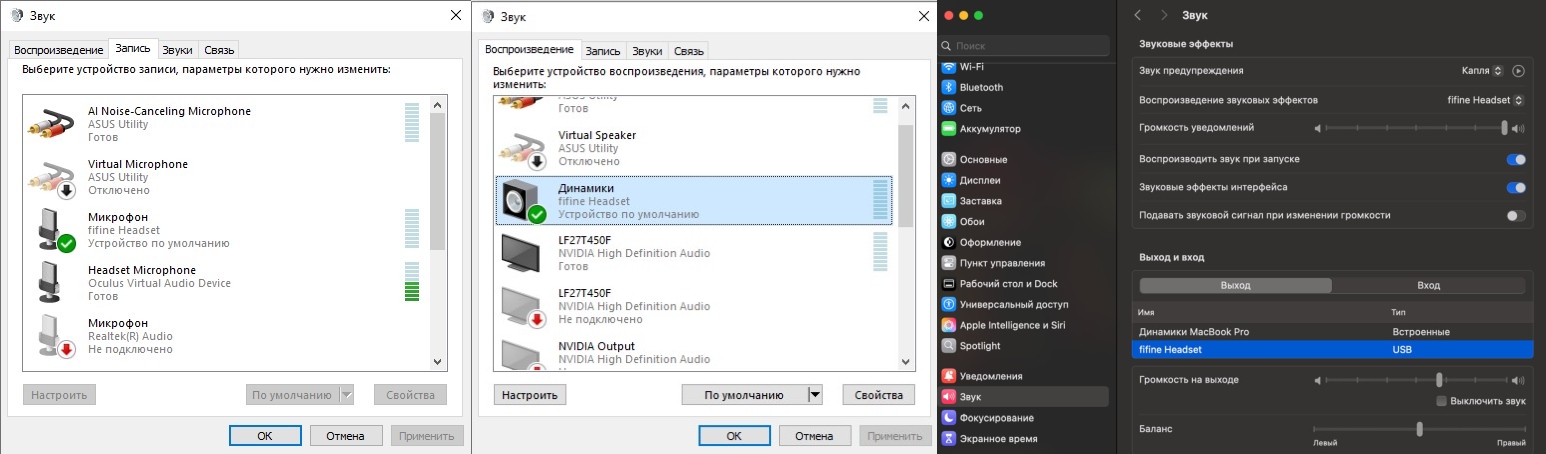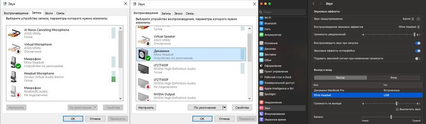 При подключении к системнику с установленной Windows 10, устройство само определилось и установило нужные драйвера. На MacBook Pro также никаких проблем не возникло, хотя устройство подключено через хаб. Все что потребуется сделать пользователю, это выбрать устройство для воспроизведения.