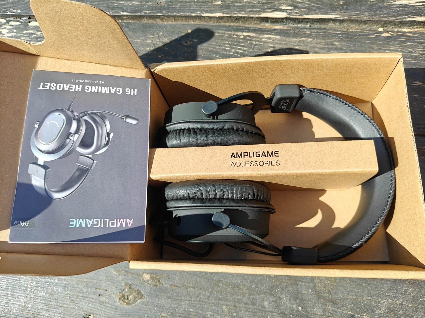 Судя по надписи Ampligame Accessories, компания Fifine готовит целую линейку аксессуаров для геймеров, и это один из ее продуктов. В общем достаем нашу гарнитуру и начнем ее более детальный осмотр.