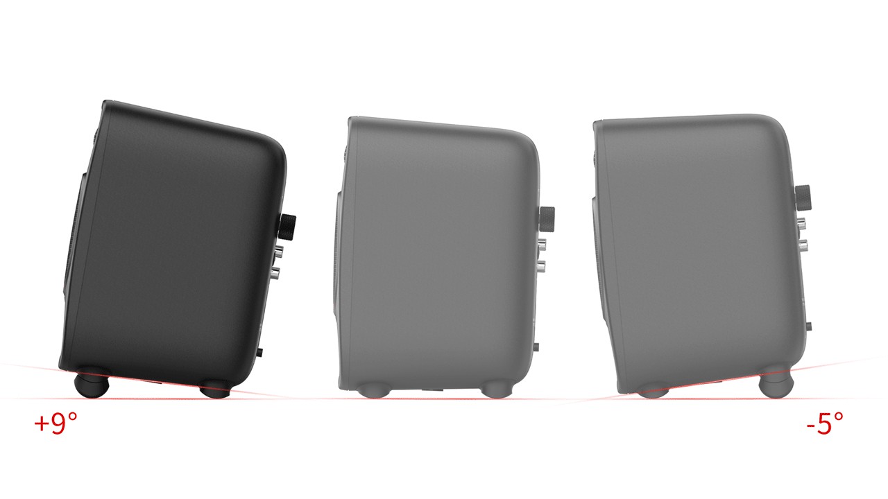 Каждой колонке добавили по паре резиновых ножек с металлическими вставками. Вставки нужны для установки на штатные ножки дополнительных резиновых ножек с магнитами. Дополнительную ножку для каждой колонки можно установить как спереди, так и сзади, создавая таким образом наклон в +9 и -5 градусов соответственно.