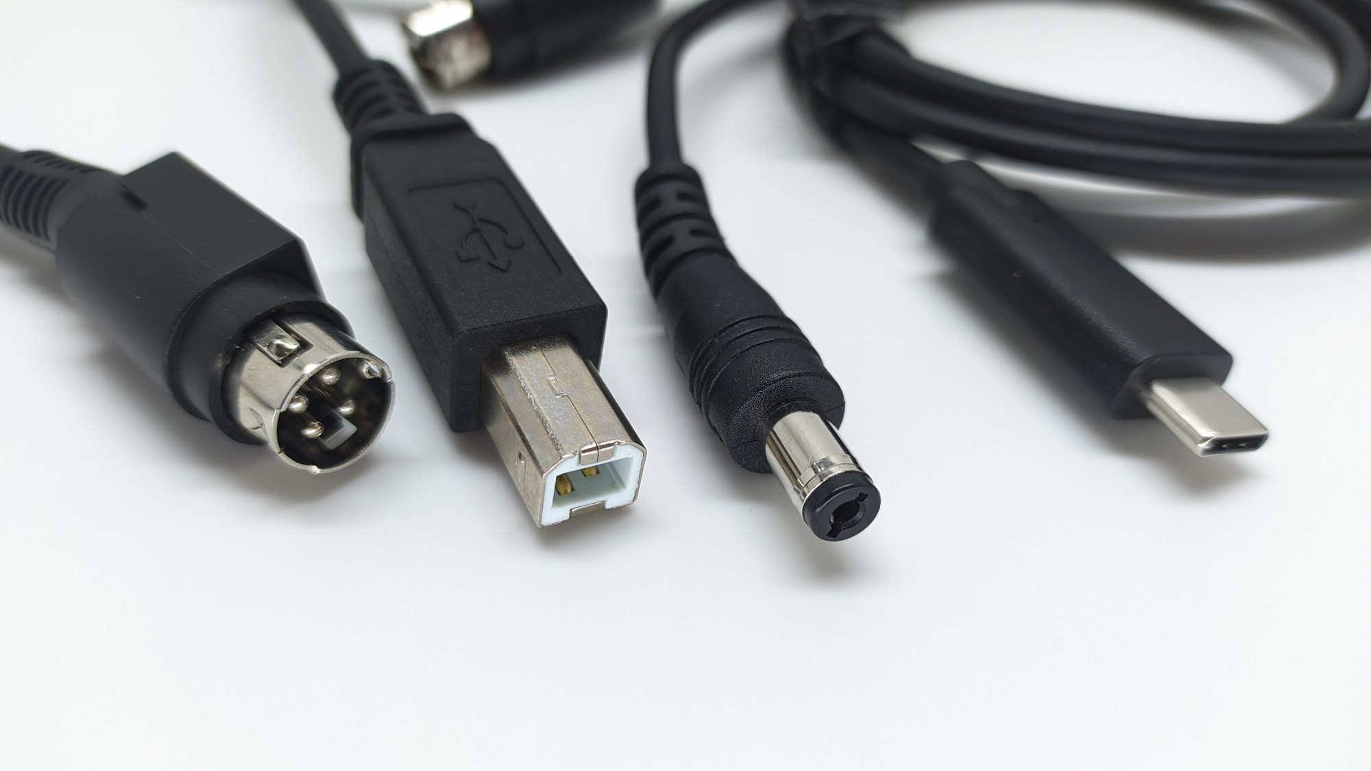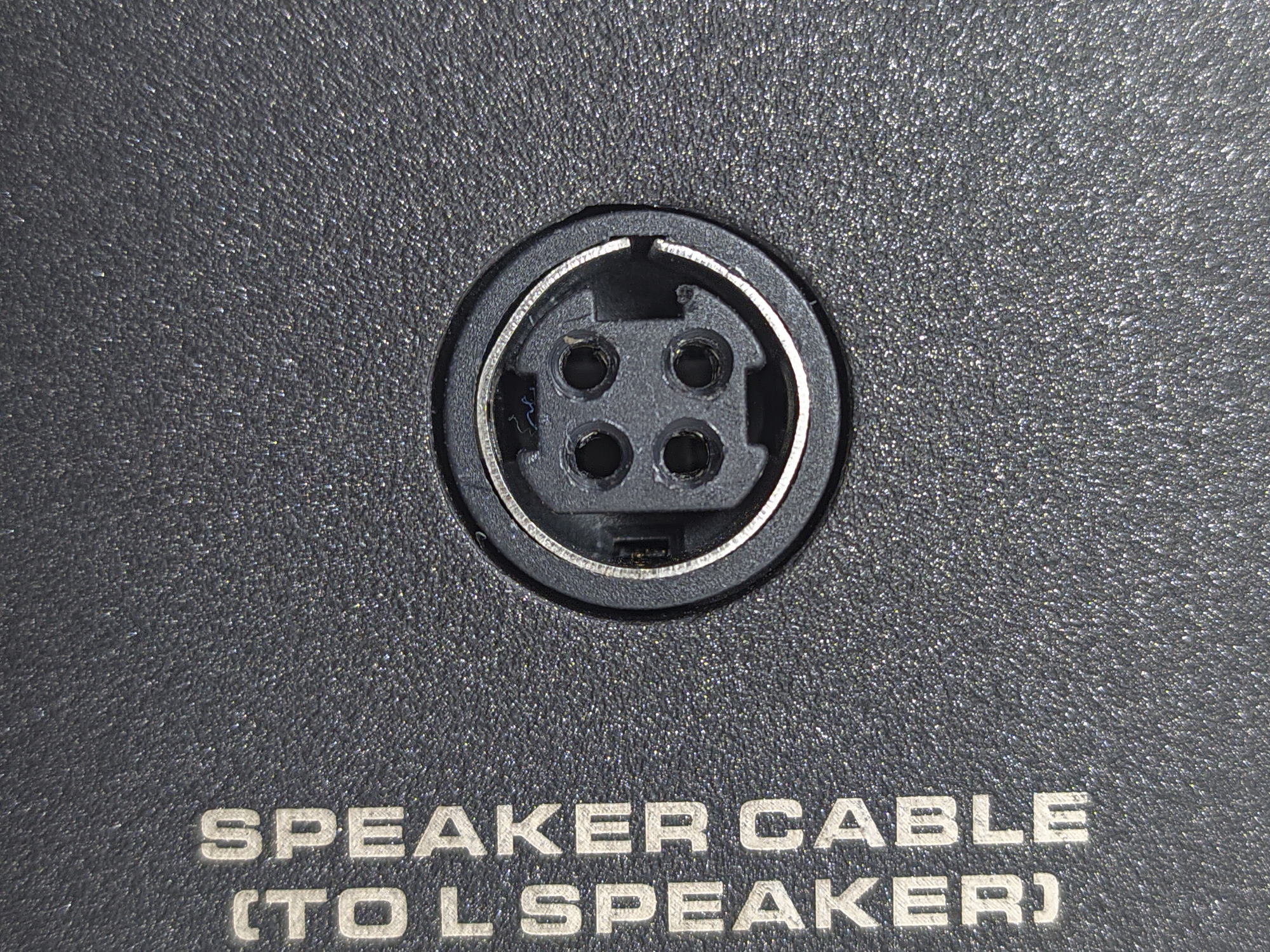 Соединительный кабель для колонок я не понял, с какими разъемами. Пытался найти такой же, но самое похожее, что нашел, это S-Video Mini DIN 4 pin. Общее у них то, что четыре пина расположены не квадратом, а трапецией, но у комплектного пины сильно толще. Хотел бы найти кабель с такими разъемами, но чтобы он был потоньше и помягче, потому что комплектный толщиной 6,7 мм и дольно жесткий. Понятно, что это запас прочности и наверняка хорошее экранирование, но кабель слишком толстый и неудобный для настольного использования.