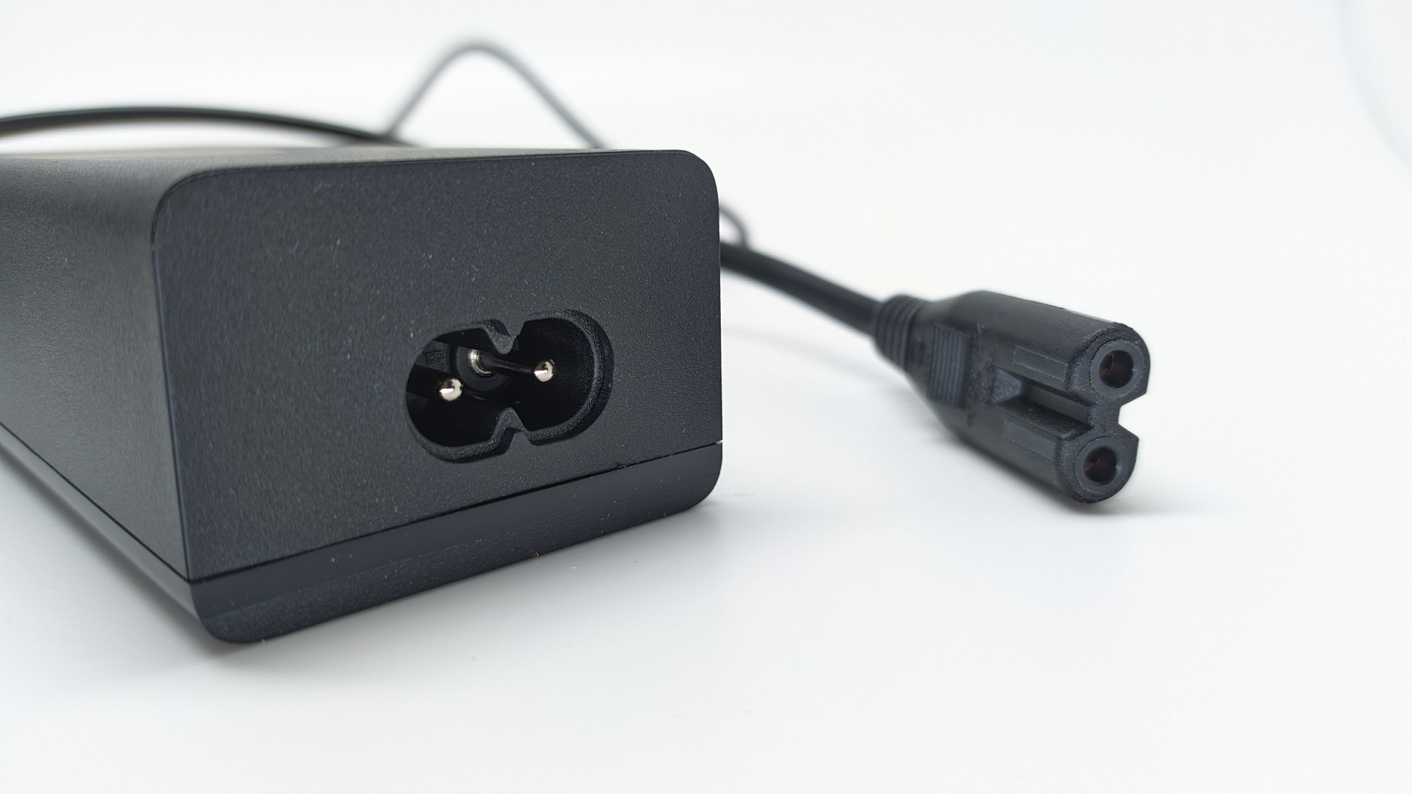 Несмотря на то что суммарная мощность мониторов заявлена 90 ватт, блок питания рассчитан на 60. Нужно было бы, наверно, написать «всего на 60», но что-то мне кажется, для них и 60 — это тоже слишком крутая цифра, либо более достоверная, чем 90. Кабель от блока до колонок длиной 150 см, а от блока до розетки всего 50 см. Но к блоку короткий кабель подключается через стандартный разъем, и за 200-300 рублей можно взять с таким разъемом хоть трехметровый.