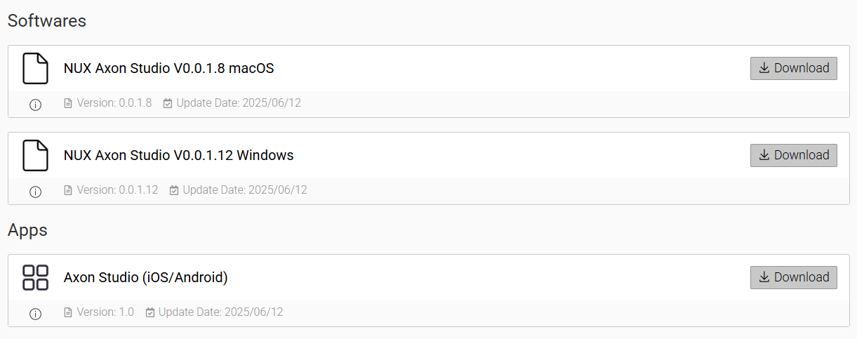 AXON STUDIO — это программа, а также и приложение, с фирменным параметрическим эквалайзером. Приложение можно скачать в Google Play, а установочный файл программы можно скачать на главной странице AXON 3 на официальном сайте NUX. Внизу страницы есть открытая по умолчанию вкладка «Support», и, помимо установщика AXON STUDIO для ПК на macOS или Windows и apk-файла для Android, там же можно скачать и инструкцию на русском языке в формате PGF. Для скачивания для iOS есть ссылка на страницу AXON STUDIO в apps.apple.com. Еще есть QR-код, который ведет на самого себя. По крайней мере, меня привел на ту же страницу, с которой я сканировал код.