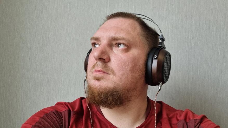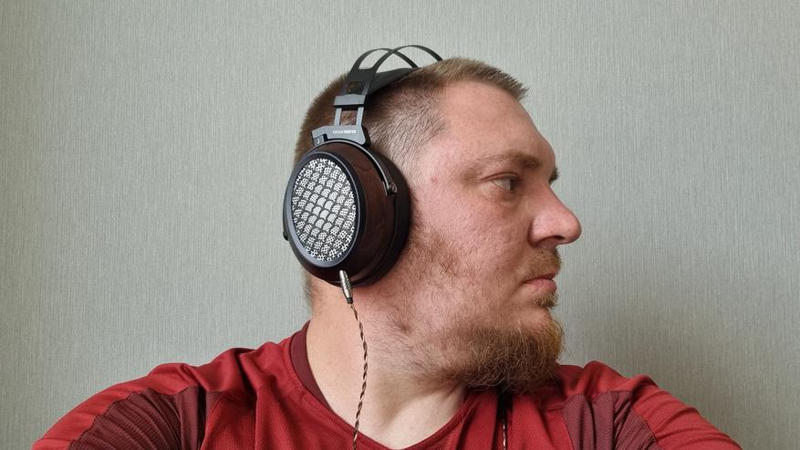 Низ прекрасно сочетается со средними частотами, которые, в свою очередь, гармонично переходят в верха. Слушается это не просто хорошо, а как настоящий шедевр аудиального мастерства. Единственный нюанс — открытая конструкция чашечек, которая, как мы знаем, значительно раздвигает для нас сцену, добавляет туда воздуха и искристости, но позволяет окружению проникать во внутрь, а нашей музыке — быть слышной находящимся рядом людям. Справедливости ради, отмечу, что даже на среднем уровне громкости я не особо-то и улавливал звуки вокруг. То есть они есть, но где-то на периферии нашего внимания, что я бы назвал даже плюсом, поскольку нет изоляции.