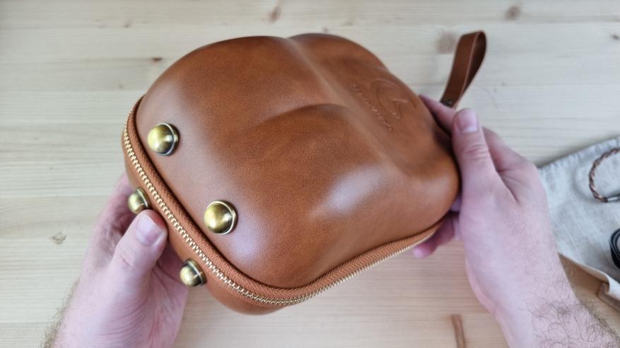 Ухо в них помещается полностью, амбушюры — на лучшей из существующих тканевой основе, прижим к голове комфортный, вес — тоже, ну и сверху модель фиксируется на ремешке из натуральной кожи. Всё остальное здесь исключительно из металла, включая шарниры со степенями свободы на 30 и 45 градусов.