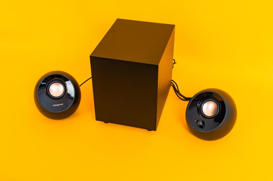 Сателлиты акустической системы Pebble Plus по своему исполнению мало чем отличаются от сателлитов первых акустических систем Pebble от компании Creative. Мне же данные сателлиты по своей форме и габаритам напоминают грейпфрут. Ключевой особенностью данных сателлитов являются динамики, расположенные под углом 45 градусов, для оптимального звучания.