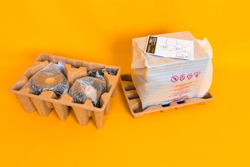 Внутри коробки все элементы Creative Pebble Plus находятся в индивидуальной упаковке и зафиксированы в ванночках из переработанного картона.