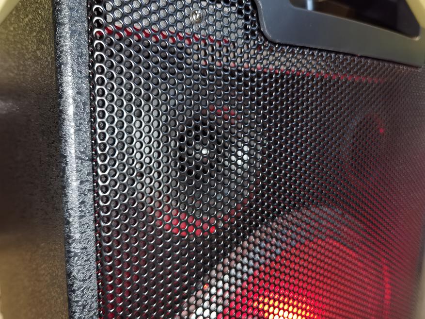 Переднюю часть прикрывает металлическая решётка чёрного цвета, которая закреплена с помощью четырёх винтиков. Под решёткой есть основной динамик диаметром примерно 28 см, чуть выше которого — небольшой динамик для воспроизведения высоких частот, а также, судя по внешнему виду, пассивный излучатель.