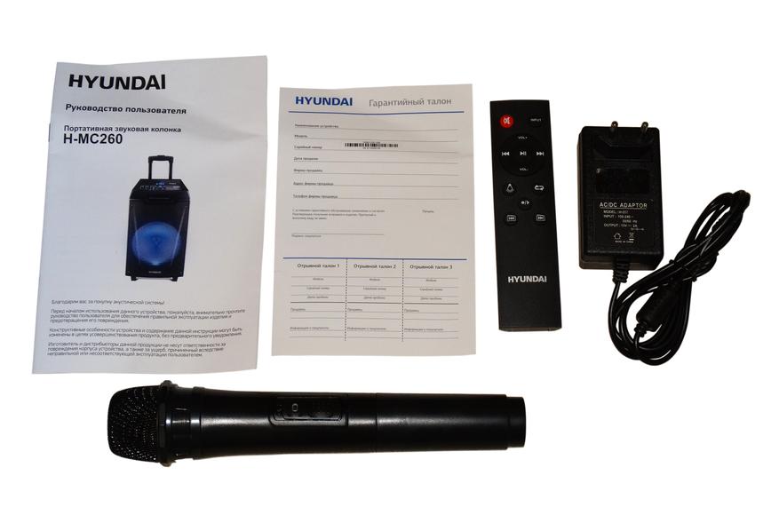 Акустическая система Hyundai H-MC260 – это хорошо собранная акустика с качественными материалами корпуса и с удобными ручками для переноски. Громкость звука позволит использовать аудиосистему как для вечеринок, так и для прочих мероприятий в просторных помещениях, а также на улице. Нужно лишь учитывать, что защиты от воды у модели H-MC260 нет, поэтому использовать её под дождём не стоит, а возле реки или бассейна нужно быть с устройством очень аккуратным. Начинающие музыканты или просто любители музыки наверняка будут рады возможности подключить гитару и дополнительный проводной микрофон.