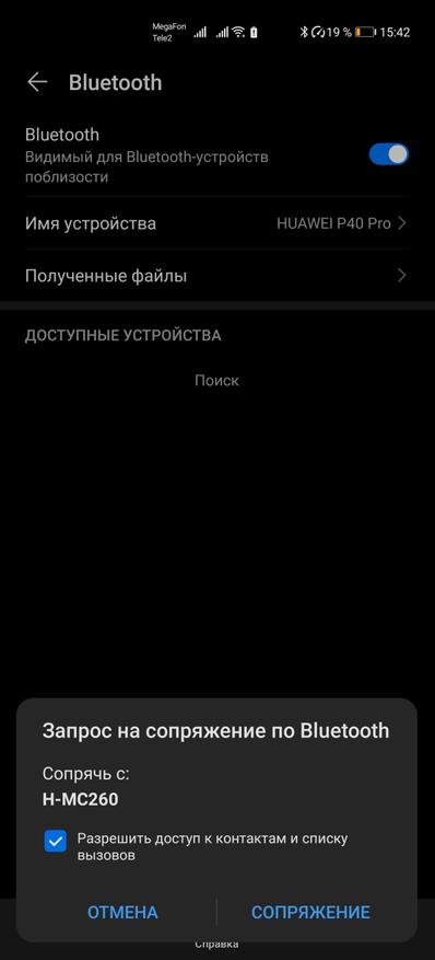 Беспроводное сопряжение с мобильными устройствами происходит стандартным способом — акустика определяется как H-MC260. Автоматически режим Bluetooth не отключается, даже если в течение длительного времени не удалось установить сопряжение с другим устройством.