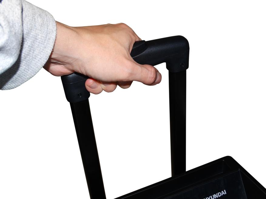 Выдвигается ручка примерно на 30 сантиметров, и фиксируется она только в полностью выдвинутом положении или наоборот, когда она задвинута.