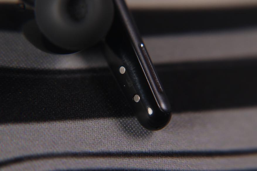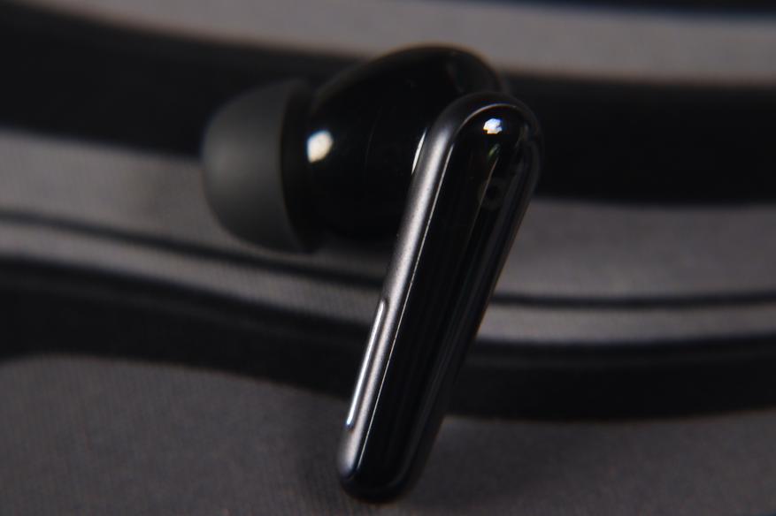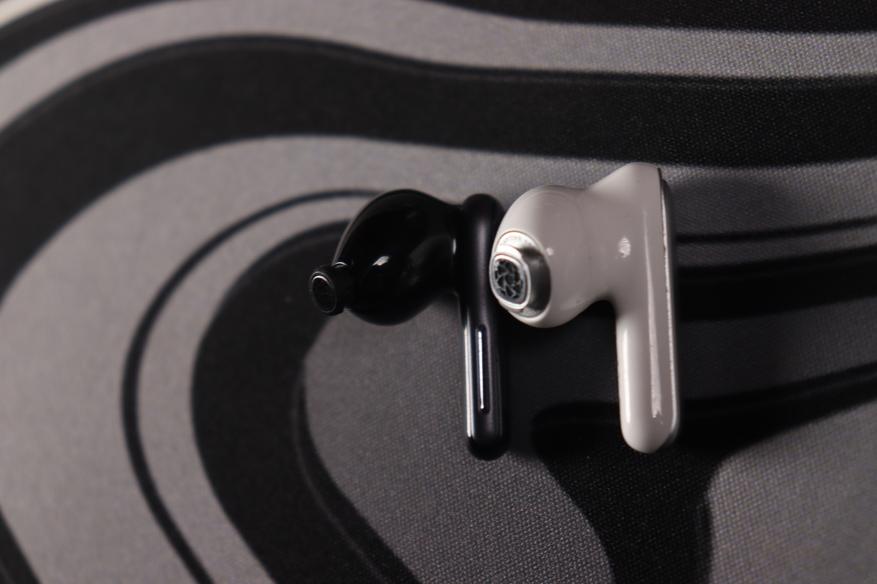 Наушники выполнены в формфакторе «ножки». Ножки достаточно массивные, но это обусловлено размещением шести микрофонов для системы ANC и обработки звонков. На внешней стороне расположены сенсорные панели с тактильными метками для удобной ориентации. Дизайн современный, сдержанный, без излишней вычурности.