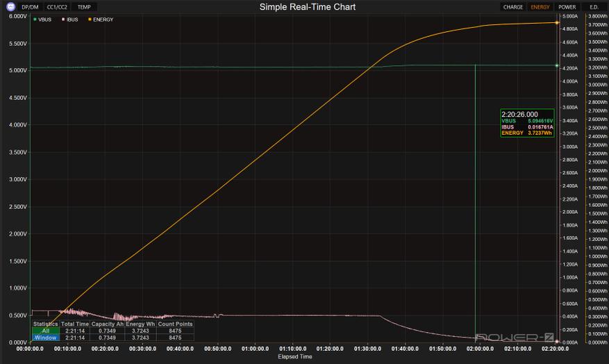 Автономность соответствует заявленным характеристикам. По данным измерений Power-Z, емкость кейса составила 3,7237 Вт·ч, полная зарядка заняла 2 часа. Сами наушники с активным ANC на громкости около 70% проработали 5 часов 33 минуты непрерывно. Кейс обеспечивает еще три полных подзарядки, суммарно получается примерно 22-23 часа работы.