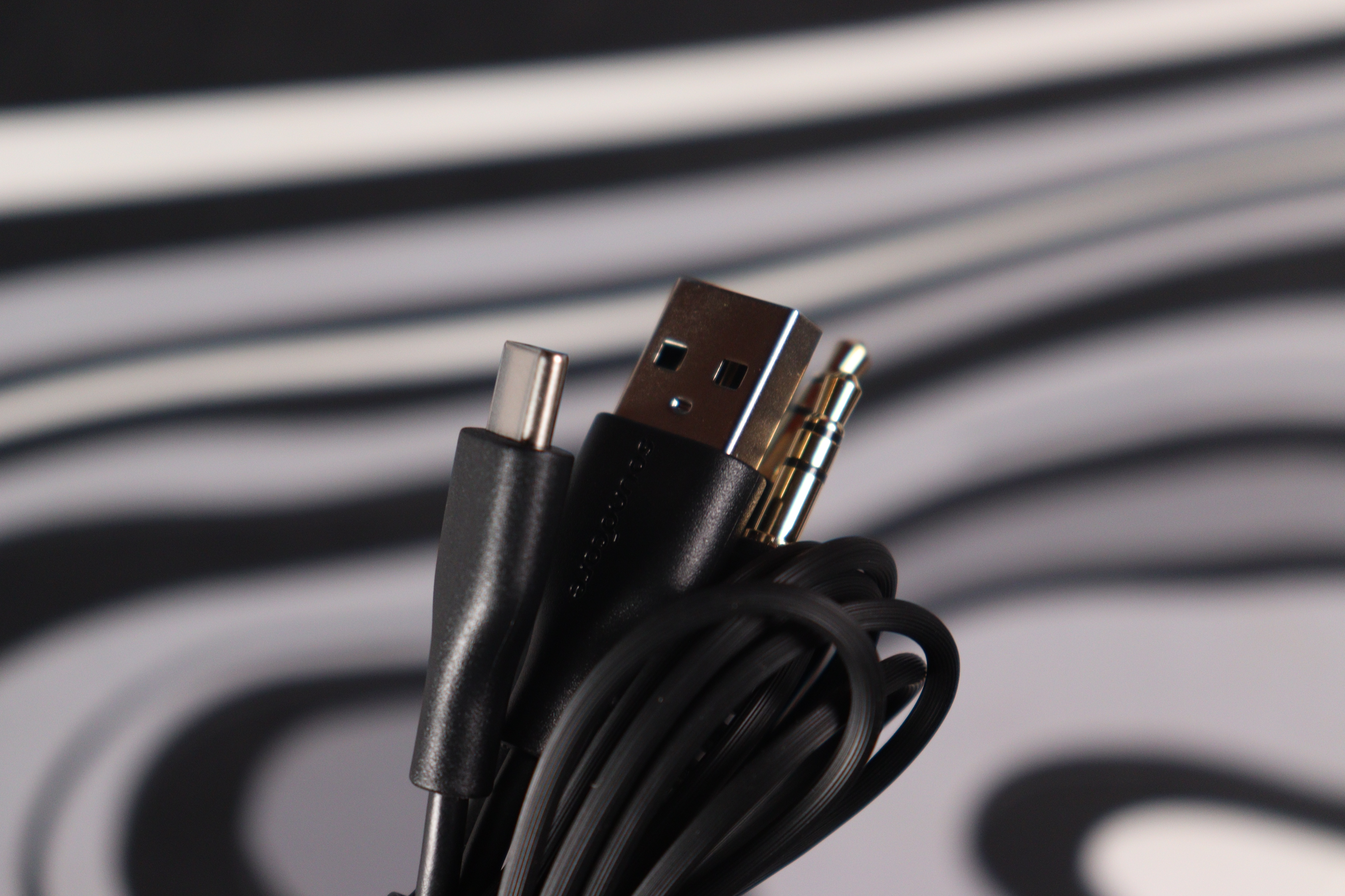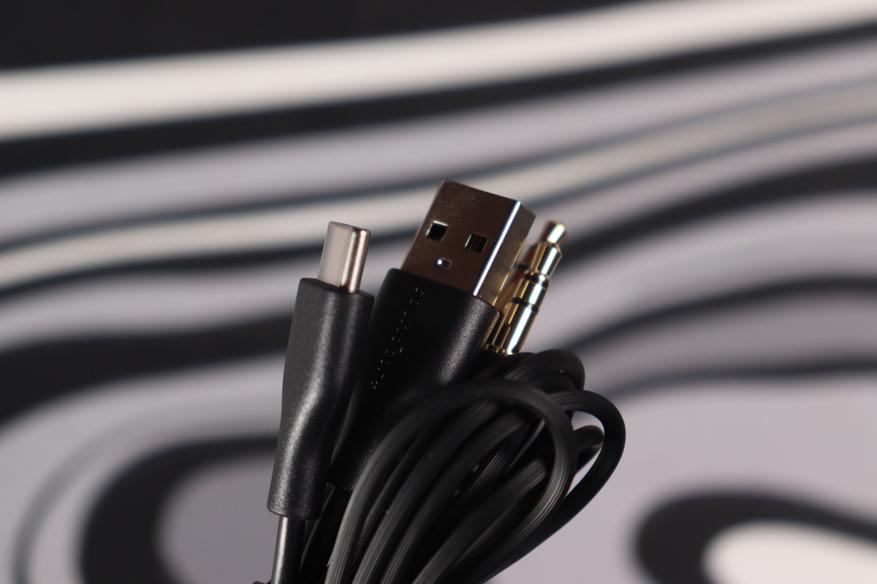 Что касается самих аксессуаров: в комплекте идёт короткий USB-C кабель для зарядки, аудиокабель 3.5 мм с прямыми коннекторами для проводного подключения, компактное руководство быстрого старта и предупреждающая карточка. Никаких адаптеров для самолётов или дополнительных амбушюр — всё практично и без излишеств.