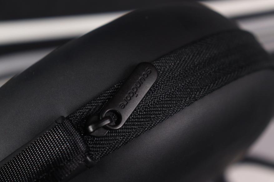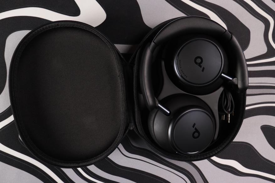 Чехол заслуживает отдельных слов. Это не просто мягкая сумочка, а полноценный защитный кейс с жёсткими стенками. Форма продумана так, что наушники лежат внутри плотно, без болтания. Качество исполнения на уровне — швы ровные, молния надёжная, материал устойчив к истиранию. В дорогу с таким чехлом можно не переживать за сохранность девайса.