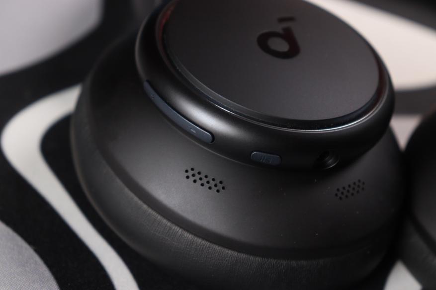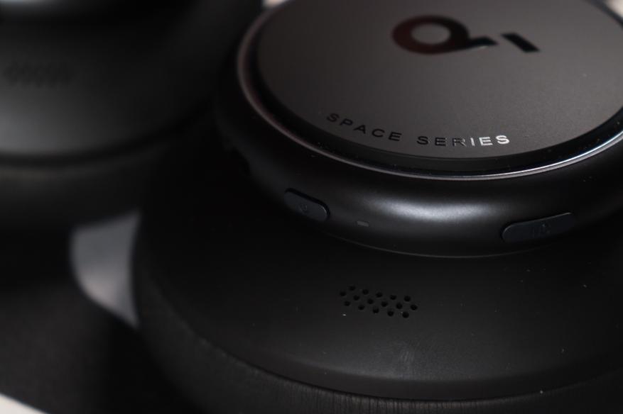 На ободах чаш расположены все органы управления: две круглые кнопки (питание и ANC), порт USB-C для зарядки и разъём 3.5 мм для проводного подключения. Кнопки имеют чёткий ход и тактильный отклик — ты всегда понимаешь, что нажал. На левой чашке ничего нет, только светодиодный индикатор статуса.
