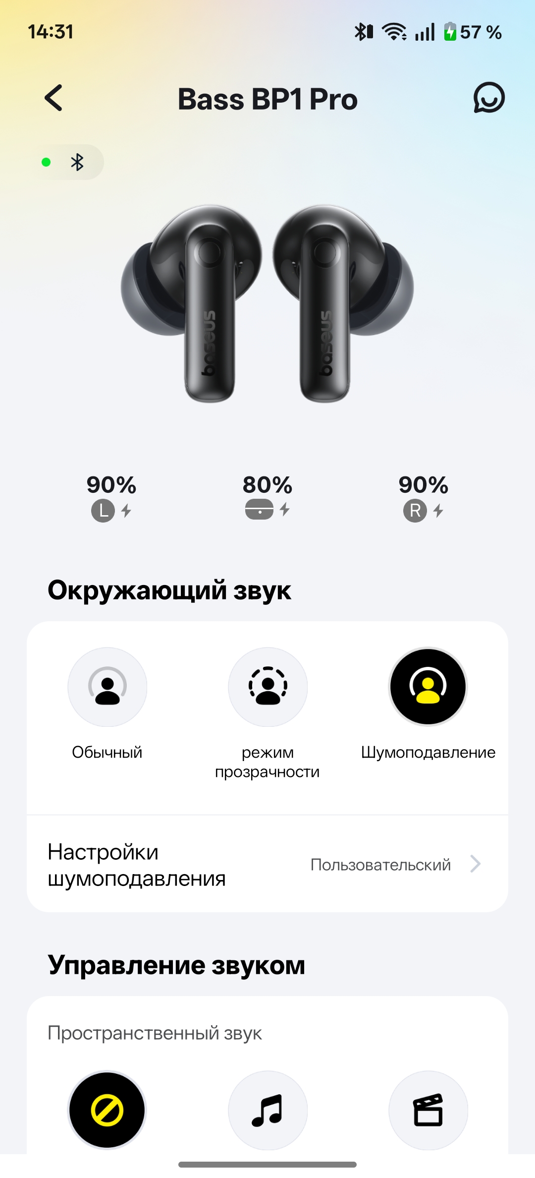 Настоящим центром управления звуком становится фирменное приложение Baseus. Оно предлагает обширный инструментарий для тонкой настройки: