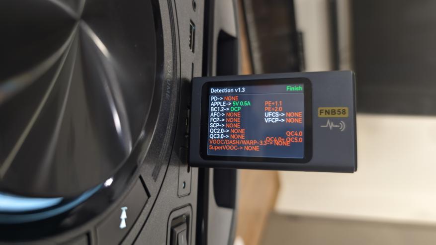 Отдельно я проверил порт, предназначенный для работы в режиме power bank. Для этого использовался USB-тестер с функцией определения поддерживаемых протоколов зарядки. Здесь все оказалось предсказуемо. Поддержка Power Delivery, профилей быстрой зарядки отсутствует, устройство честно работает в заявленном режиме 5 В 1 А.