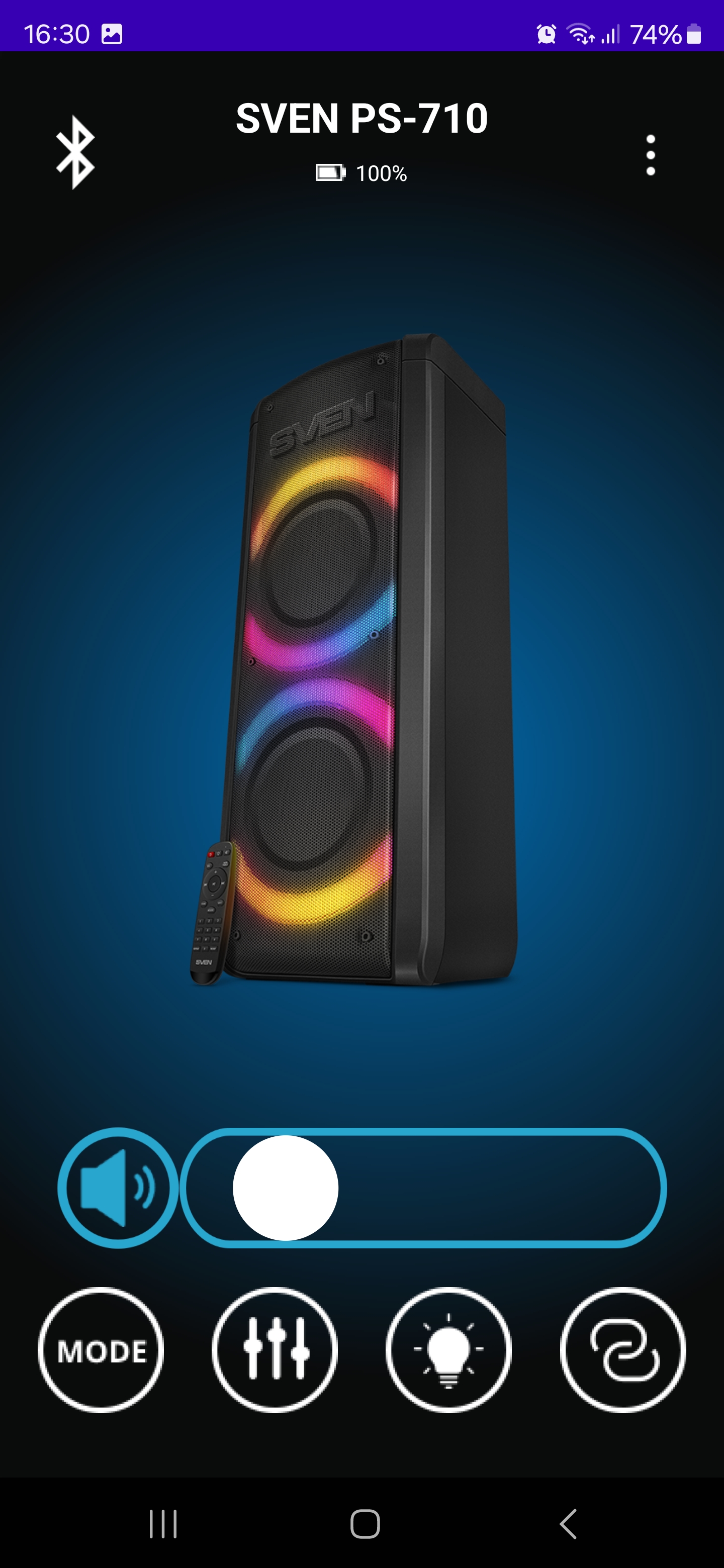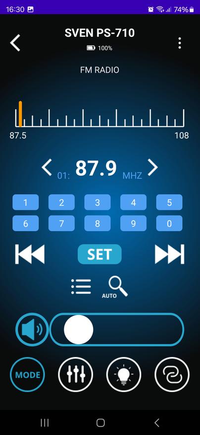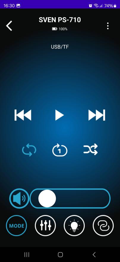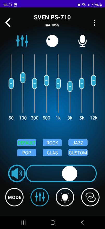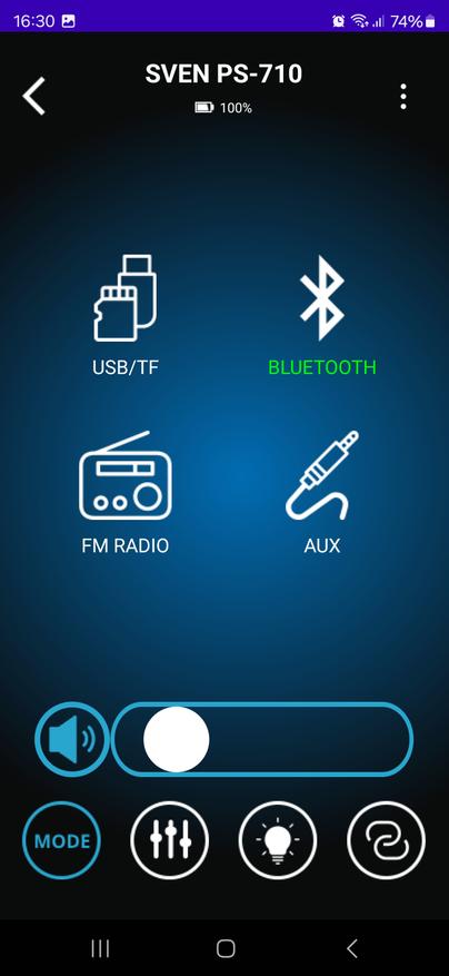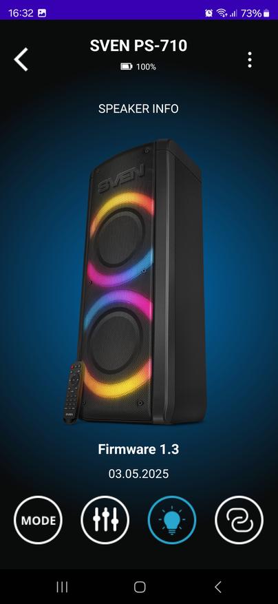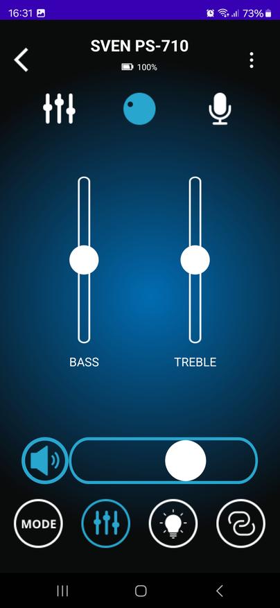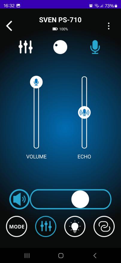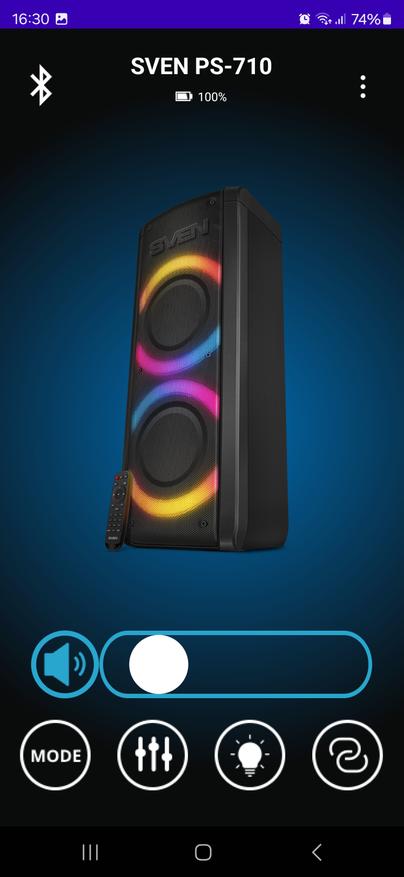 Приложение для управления Sven PS-710 оказалось удобным инструментом, который действительно упрощает работу с колонкой. Оно позволяет не только переключать режимы воспроизведения и управлять звуком, но и тонко настраивать эквалайзер, регулировать параметры микрофонов, изменять подсветку и даже проверять уровень заряда аккумулятора. Все это доступно прямо со смартфона, без необходимости каждый раз подходить к колонке и нажимать кнопки.