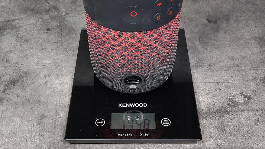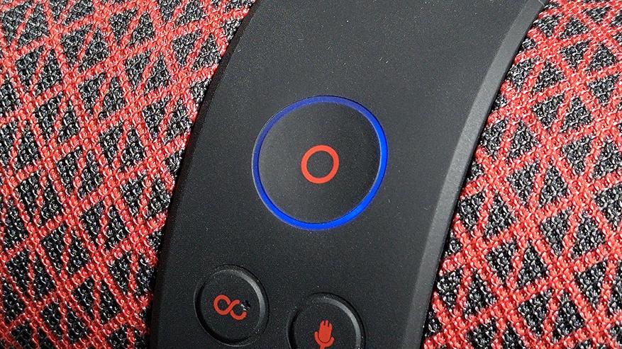 Портативная колонка выполнена в форм-факторе классического цилиндра. Сверху корпус обтянут мягкой тканью, однако при этом заявлена влагозащита по стандарту IPX6.