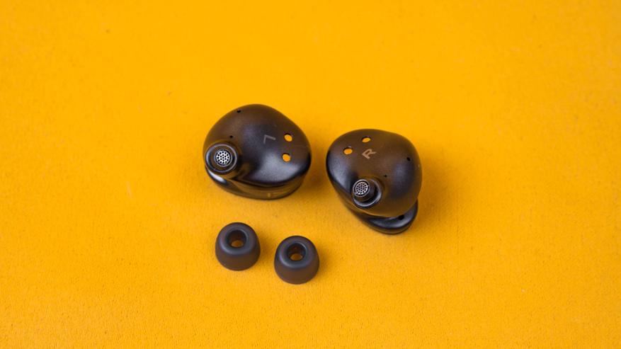 Если присмотреться к внешней стороне наушника, то помимо сенсорной панели можно заметить отверстие, закрытое сеточкой, за которым спрятан микрофон. Данный микрофон используется в системе шумоподавления ANC для удаления посторонних шумов. Световой индикатор работы наушника находится на противоположной от микрофона стороне, на внешней части корпуса наушника Outlier Pro.