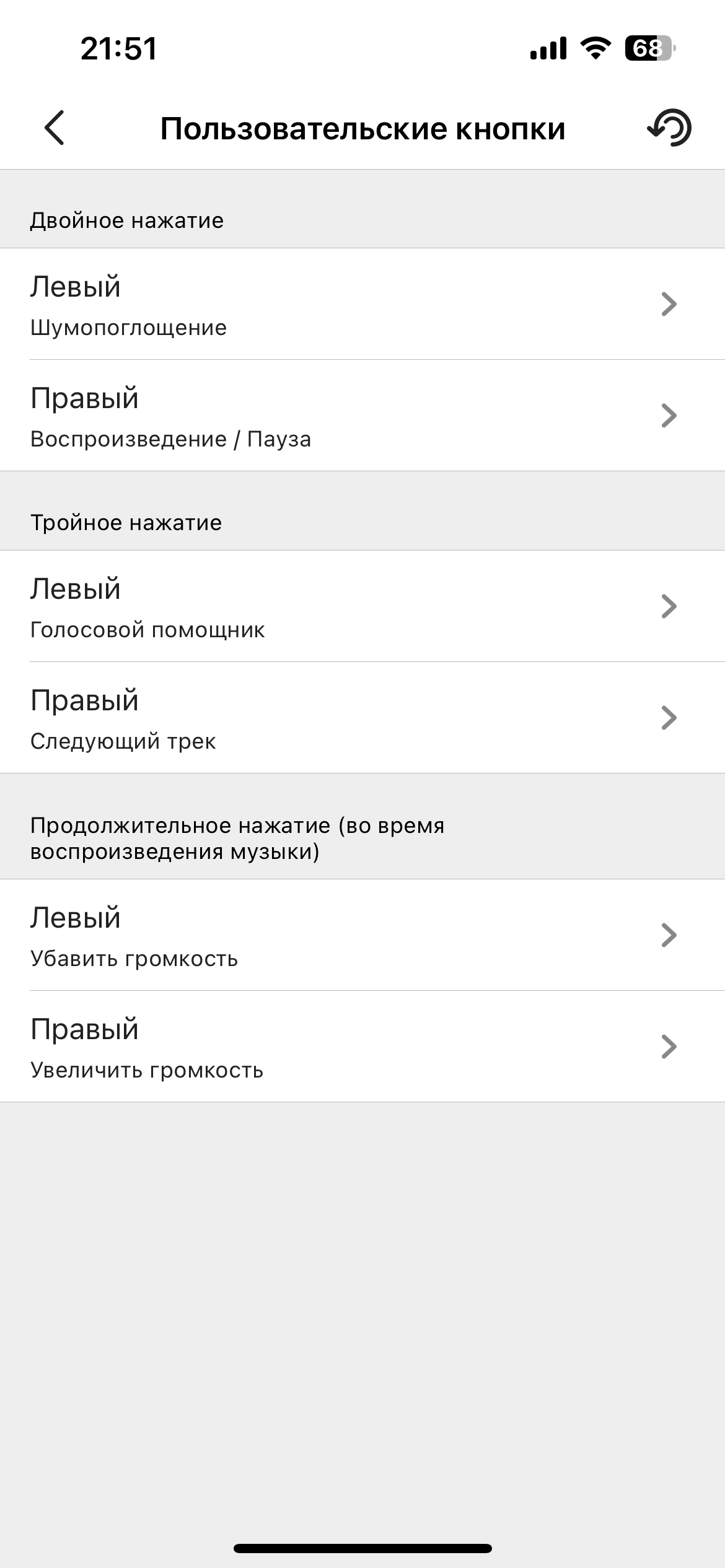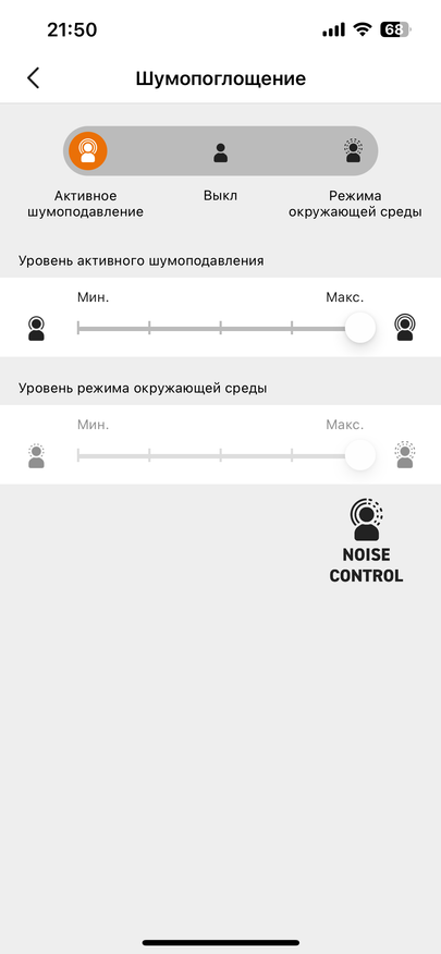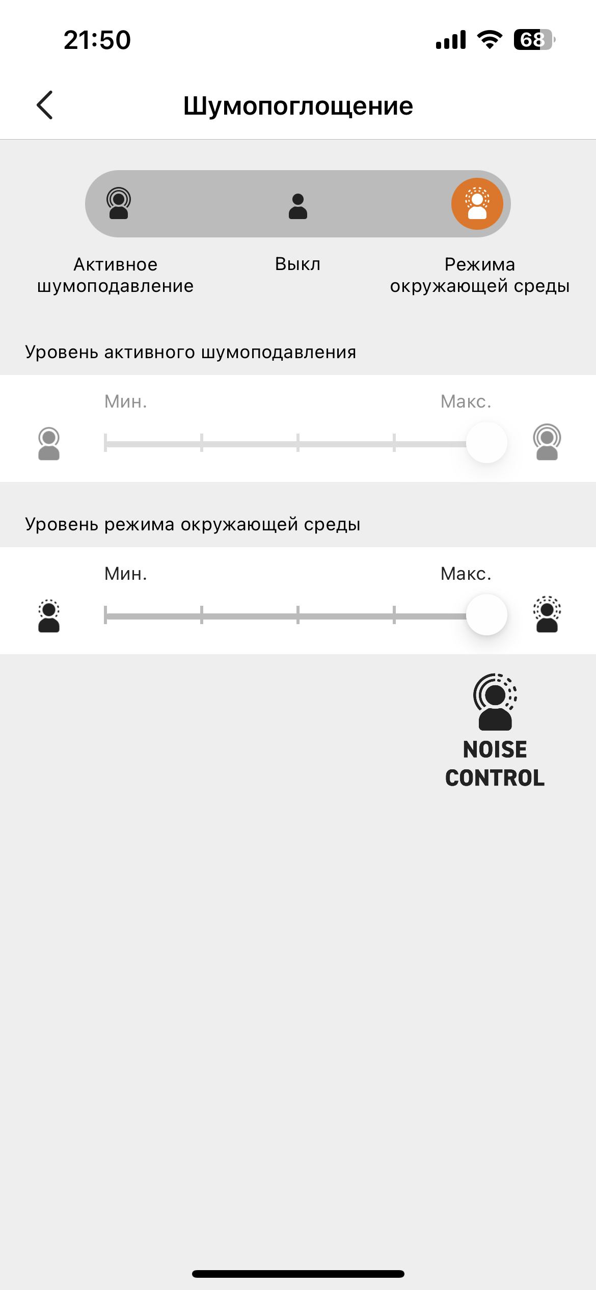 - Два раза коснуться наушника – смена режима шумоподавления (Ambient/ANC/off)