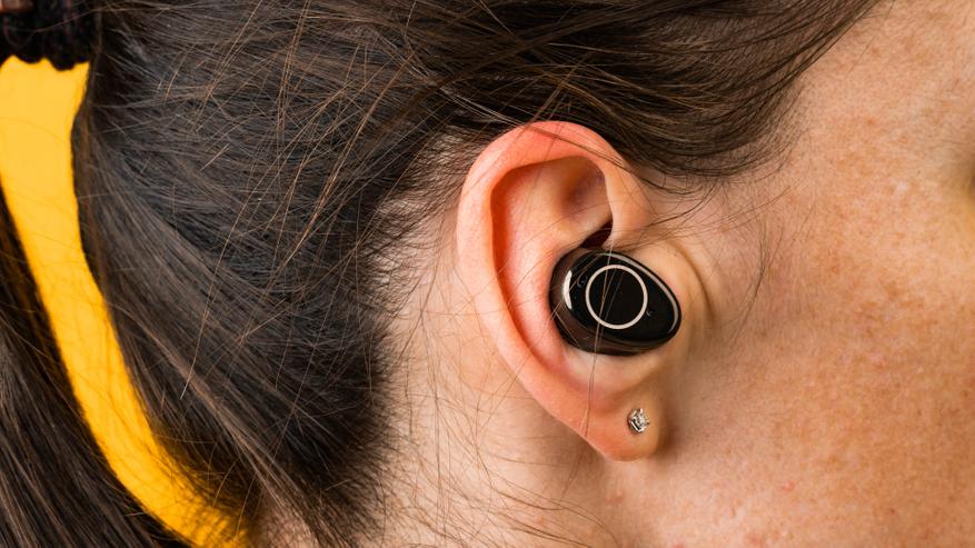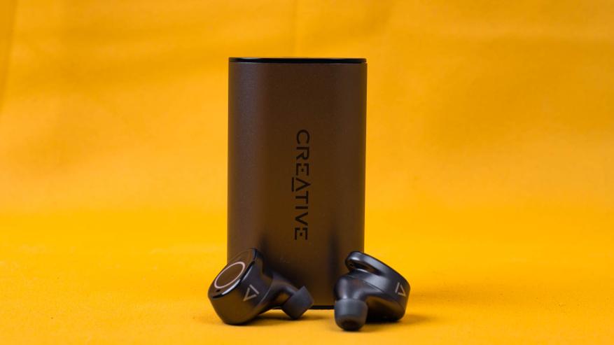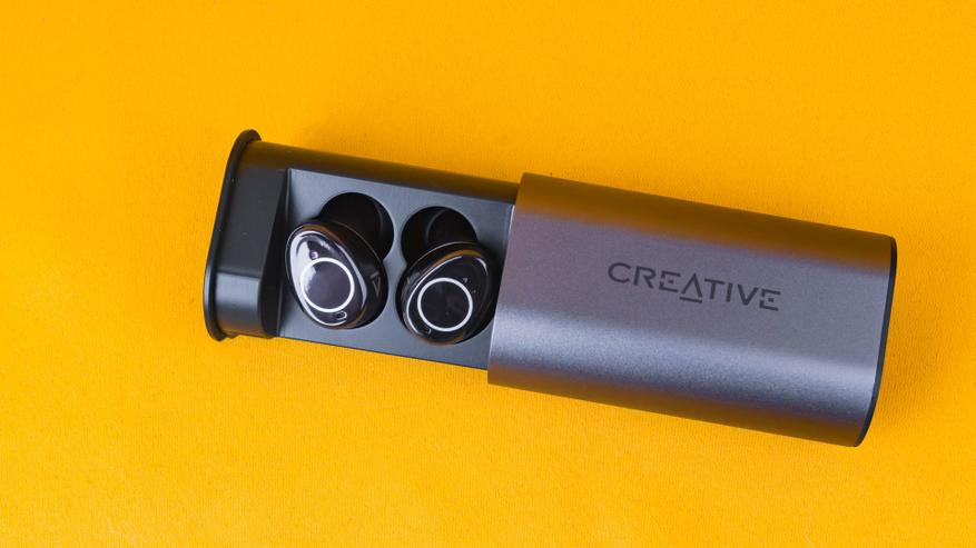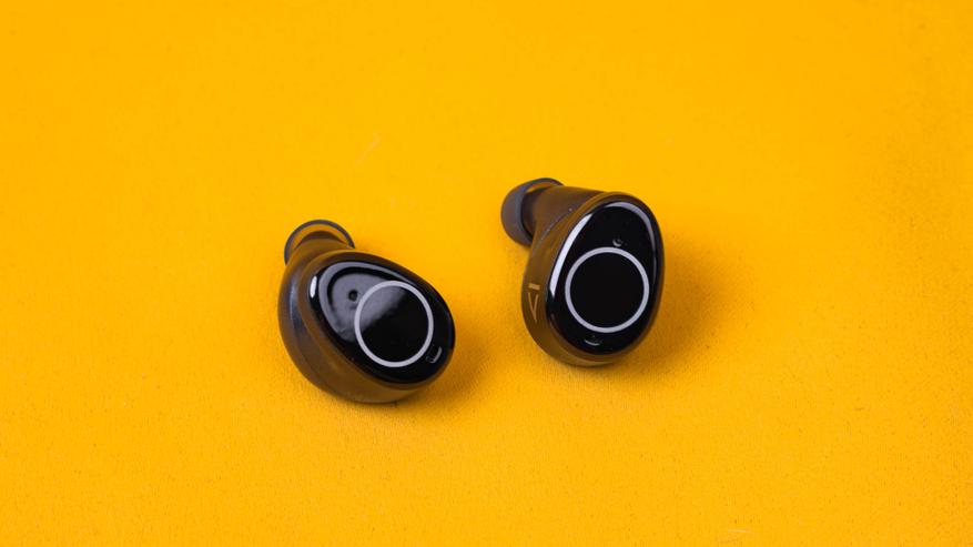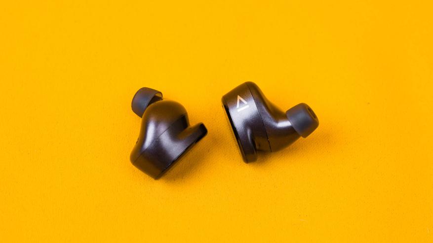 Внешний вид самих беспроводных наушников Outlier Pro условно можно назвать похожим на слегка вытянутую каплю. На боковых гранях наушника и на его внешней стороне располагаются небольшие символы. Если присмотреться, то на боковой грани символ похож на букву «А» в логотипе компании Creative, а круг на тыльной стороне отображает область сенсорной панели.
