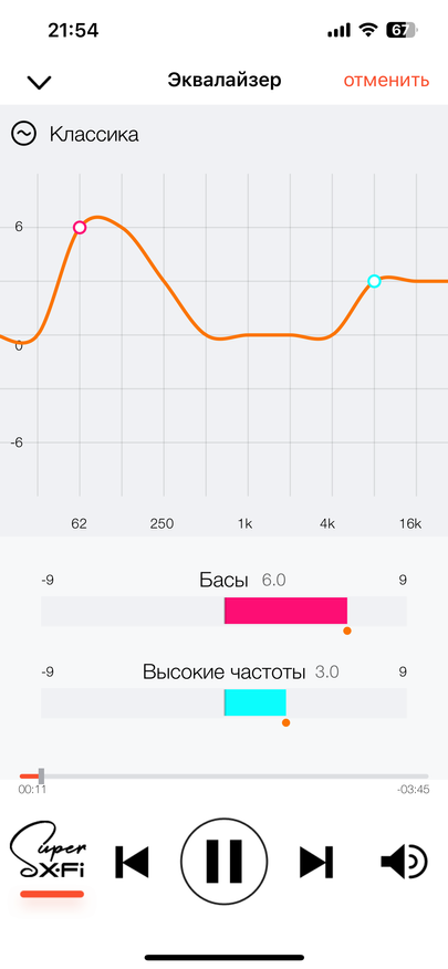 В Creative Outlier Pro имеется наличие аудиокодеков SBC и ACC. Передача аудио происходит через Bluetooth версии 5.2. В данной модели беспроводных наушников можно слушать музыку любых жанров. Качество звучания на достойном уровне. Звуковая сцена насыщена и хорошо сбалансирована. Имеется небольшое преобладание низких частот, басы мягкие и объемные, что придется по вкусу некоторым пользователям. В средних и высоких частотах детализация и проработка на достойном уровне, но мне чуть-чуть не хватило плотности звука в тяжелой музыке, в остальных композициях все было прекрасно и гармонично. Слушая аудиокомпозиции с помощью технологии Super X-FI, звук получается чище, но при этом низкие частоты немного проседают. Скорее всего, сделано это в угоду более «аудиофильского» звучания. Такое звучание на любителя, однако, послушать его стоит, так как любимые композиции могут заиграть новыми красками.