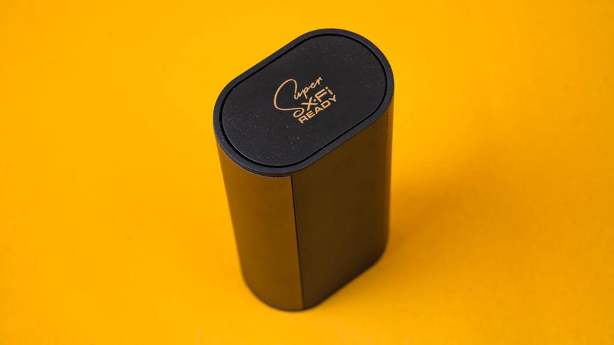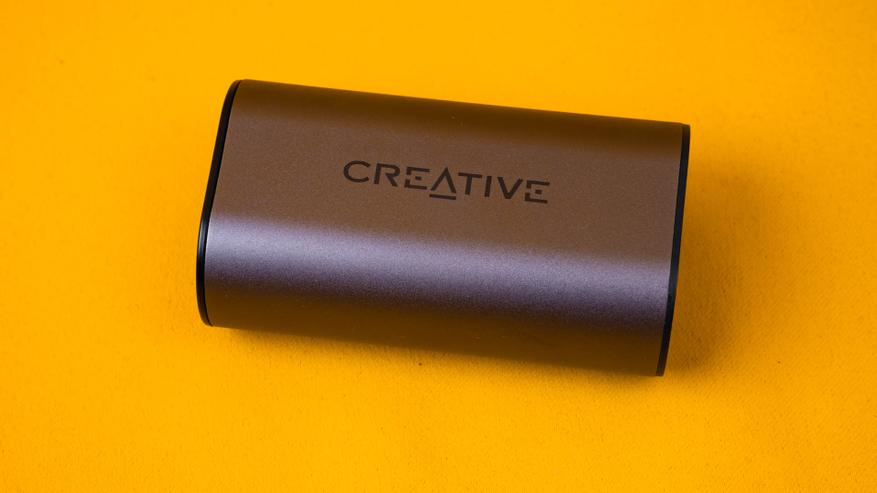 Корпус зарядного кейса Creative Outlier Pro по своей конструкции мало чем отличается от первых Creative Outlier Air, к слову они вышли более трех лет назад. Корпус выполнен из пластика и окрашен в благородный металлический цвет, на котором будут не сильно видны царапины, оставленные со временем. Для того, чтобы окружающие понимали от какого бренда ваши беспроводные наушники, на верхней части футляра красуется надпись Creative, а на одной из боковых граней указана поддержка технологии Super X-FI.