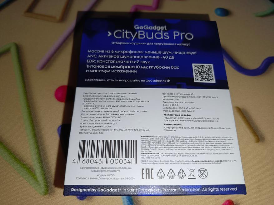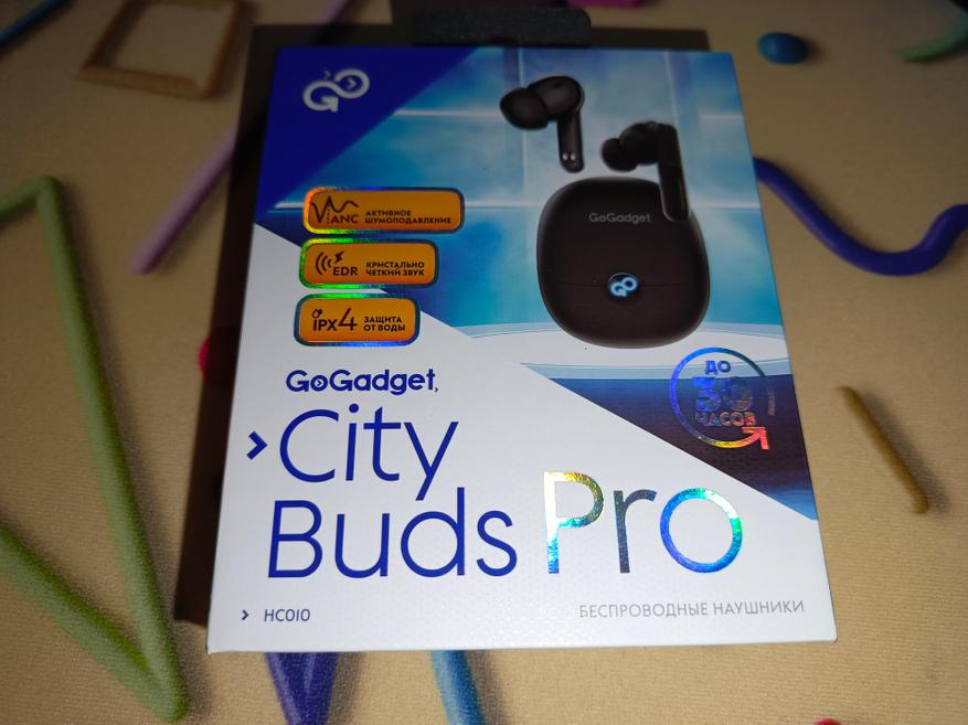 Для начала посмотрим на коробку. GoGadget CityBuds Pro поставляются в прямоугольной упаковке, изготовленной из прочного жесткого картона с качественным принтом.