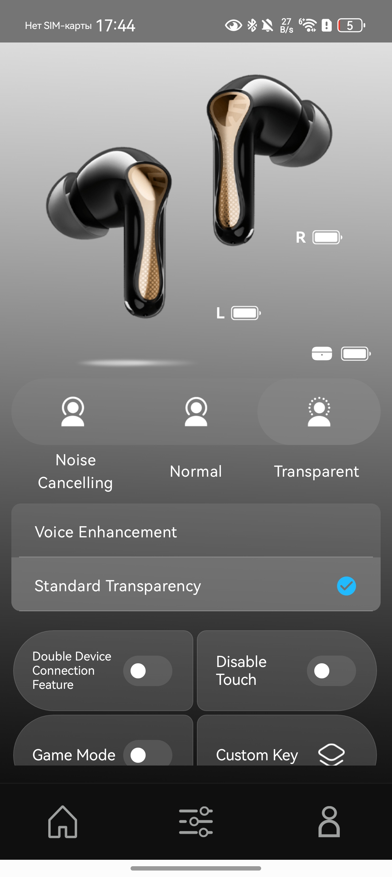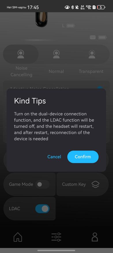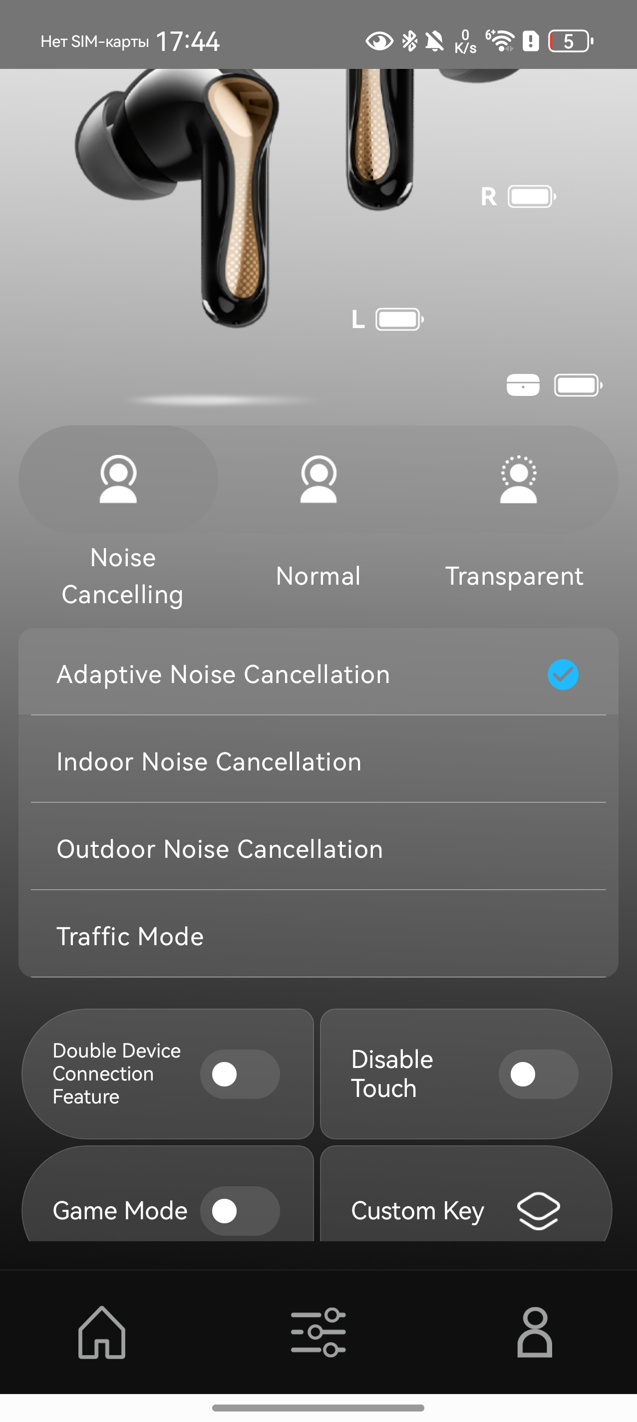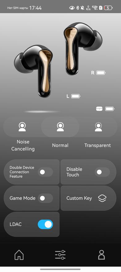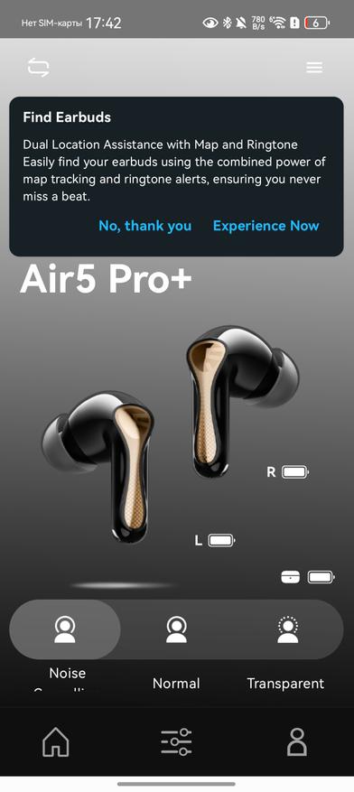 Есть три вида шумоподавления, плюс прозрачный режим с двумя видами настроек. Каждый из них работает хорошо: шум приглушается в зависимости от настроек и претензий к ним нет. При включенном LDAC, есть задержка в играх, поэтому надо отключать его. Я не играю в Air5 Pro+, так как кощунственно использовать их не по назначению.