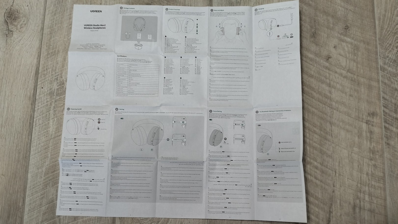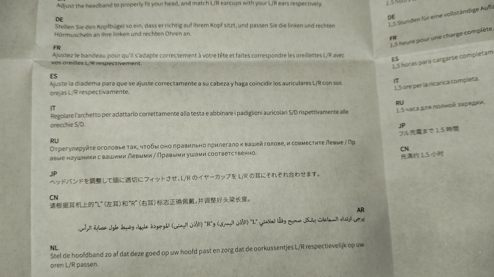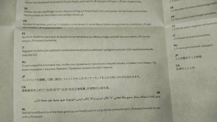 Помимо самих наушников в комплект поставки входит макулатура в виде гарантиника и инструкции. Инструкция сделана в виде одного огромного листа с описанием характеристик и принципах работы с наушниками. Инструкция мультиязычная и русский язык присутствует.