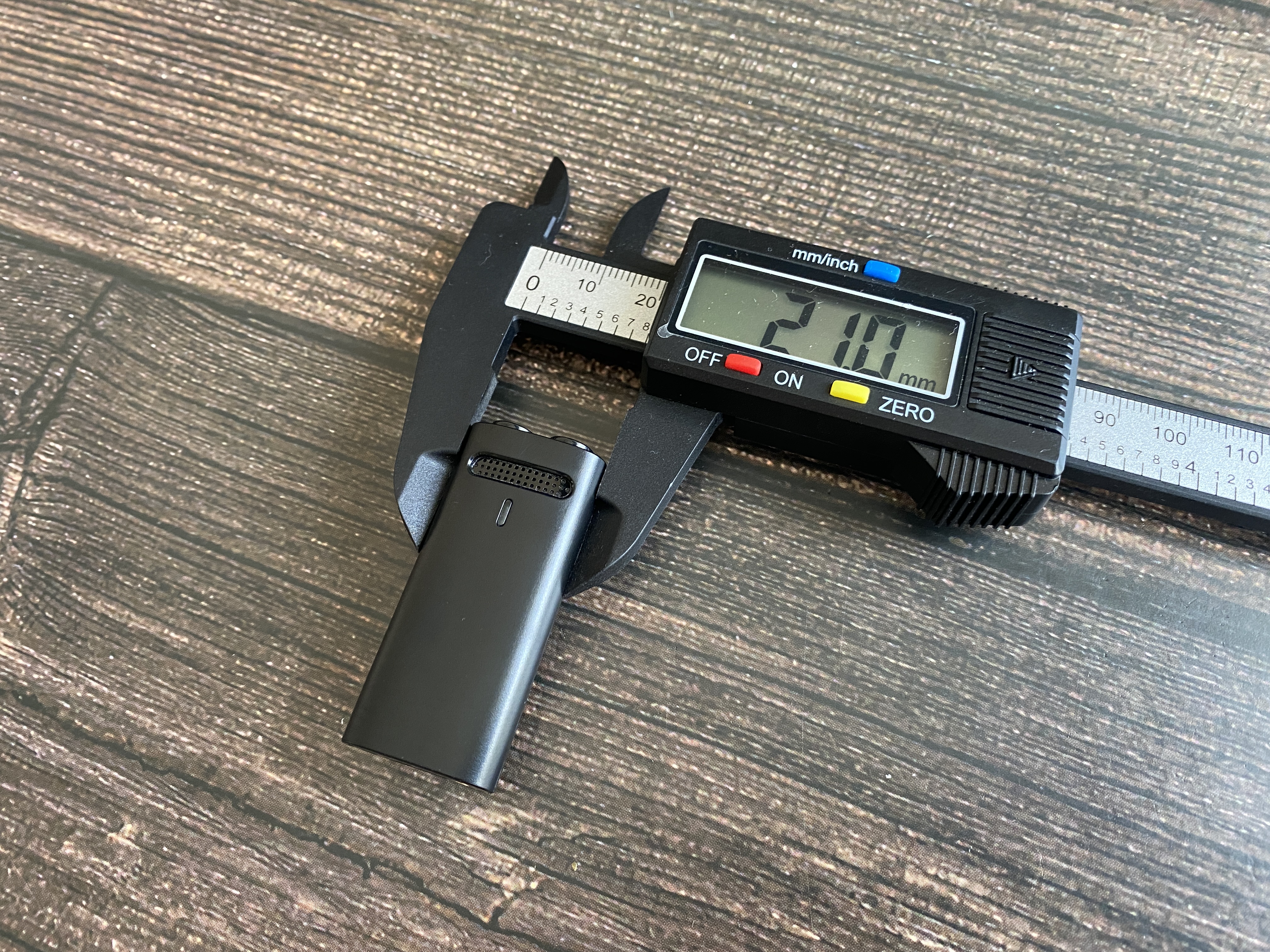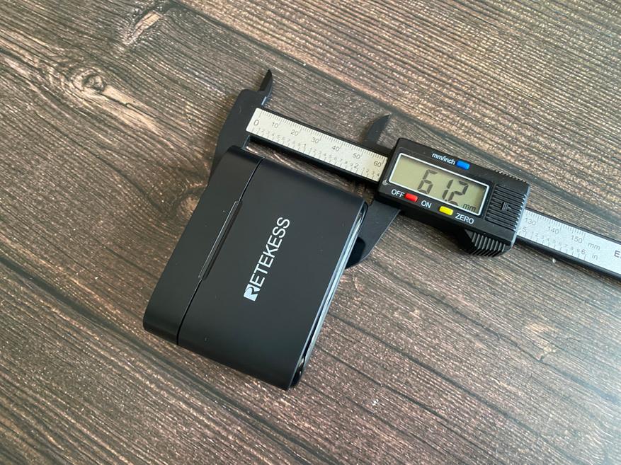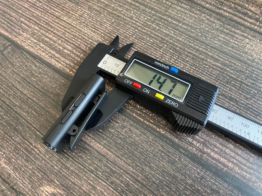 Размер передатчика (микрофона) 14.7 мм x 48.2 мм x 21 мм. Размер приемника 16 мм x 45 мм x 7.4 мм.