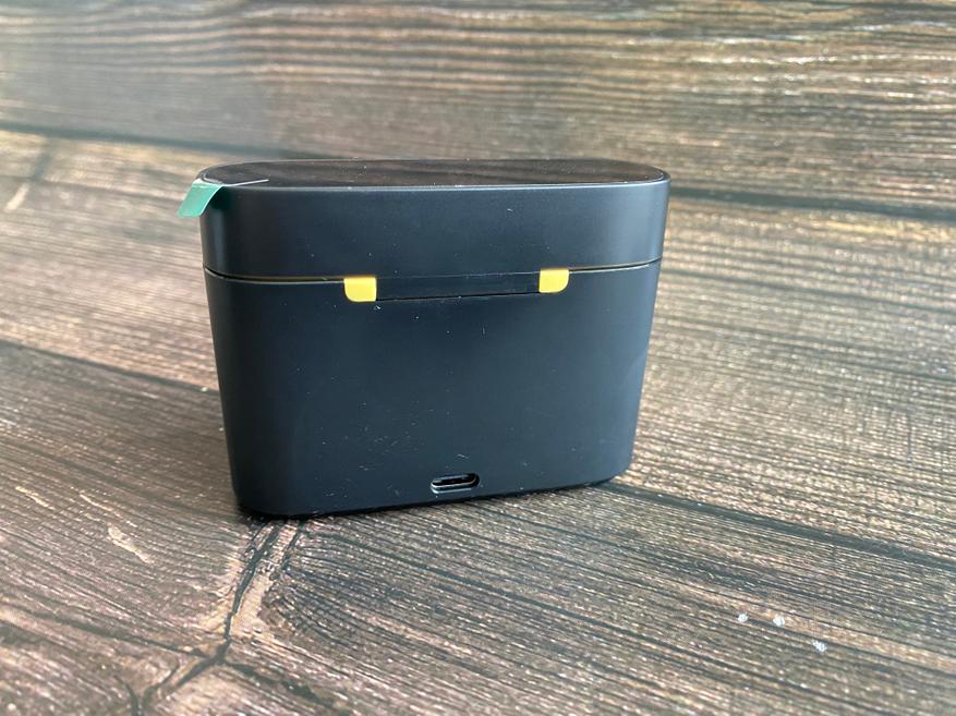 Представлен данный комплект, только в черном цвете. Внешний вид кейса очень схож с обычным кейсом для беспроводных наушников. Корпус выполнен из пластика, на мой взгляд весьма хорошего качества. Для контроля остаточного заряда аккумулятора имеется небольшой цифровой дисплей в нижней лицевой части. Зарядный кейс имеет встроенный аккумулятор с ёмкостью 500 mA*ч. На задней части корпуса предусмотрен разъем USB Type-C для зарядки. При открытии кейса моментально загорается индикатор остаточного заряда аккумулятора.