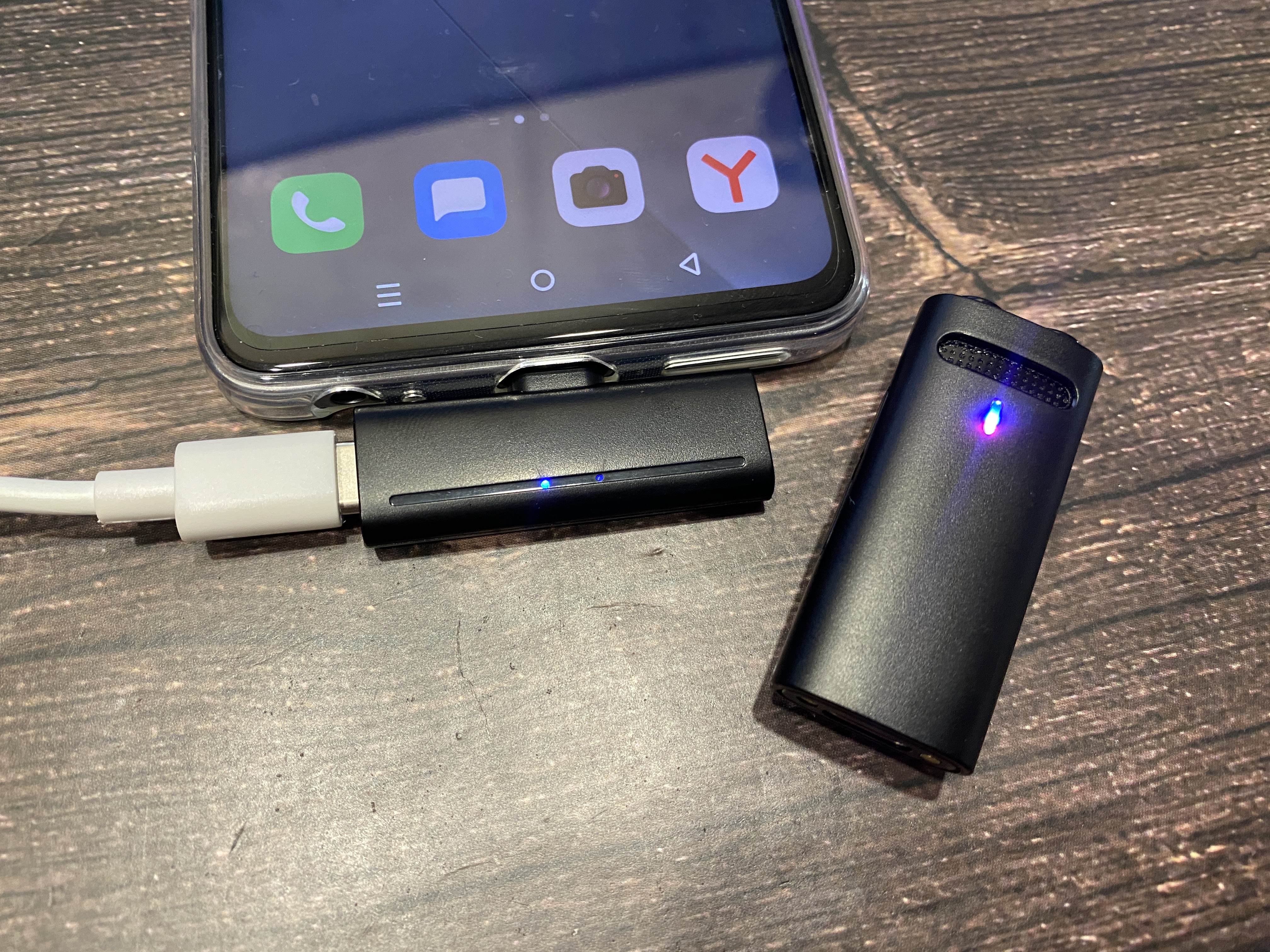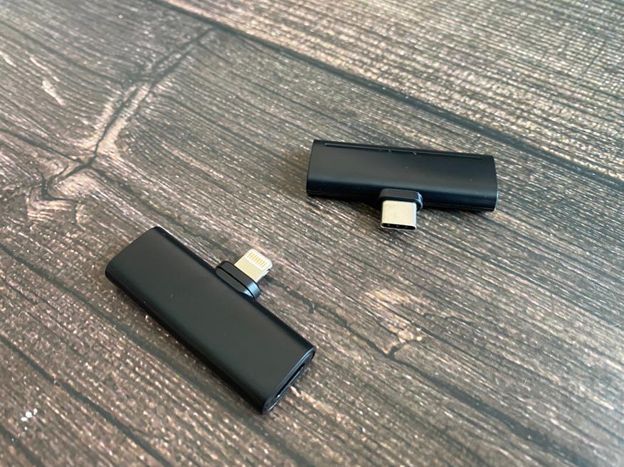 Два комплектных приемника имеют разные разъемы, один для iOS (Lightning), а второй для Android (USB Type-C). Также можем заметить, что на боковой части приемника имеется разъем для зарядки смартфона. Получается, что во время записи или стриминга можно заряжать смартфон, что определено удобно. Во время работы на корпусе загораются светодиодные индикаторы для визуального контроля.