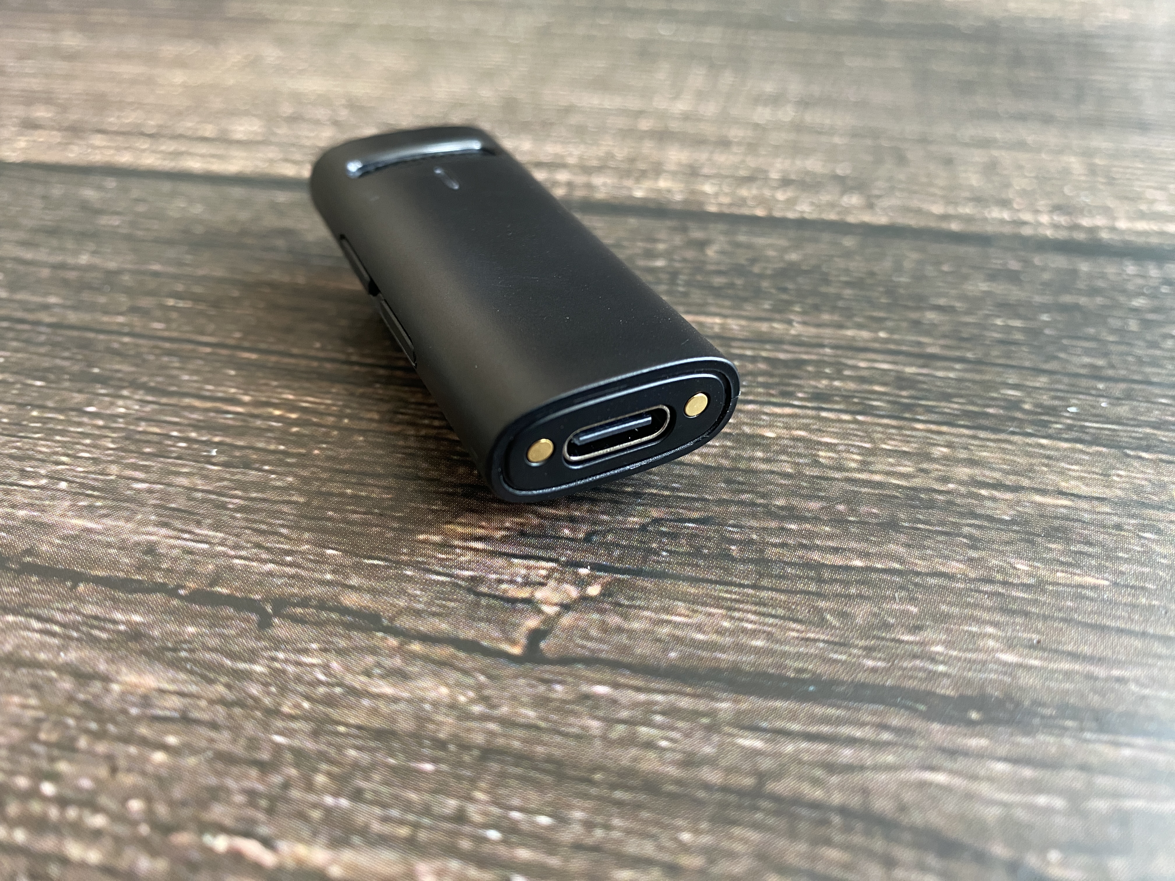 Корпус микрофона также выполнен в черном цвете и изготовлен из пластика. На нижней части корпуса имеются контакты для зарядки при помощи кейса, а также присутствует разъем USB Type-C, через который также можно осуществлять зарядку внутреннего аккумулятора. На боковой стороне корпуса расположились 2 механические кнопки, которые отвечает за включение, активацию регулировки громкости, включение бесшумного режима, включение или отключение шумоподавления, а также включить или отключить реверберацию. Ветрозащиты у данной модели не предусмотрено.
