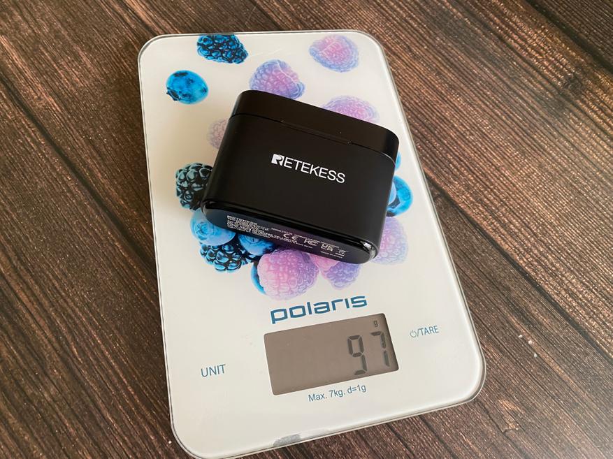 Полный комплект весит всего 97 грамм. Размер зарядного кейса 61 мм x 31 мм x 82.7 мм.