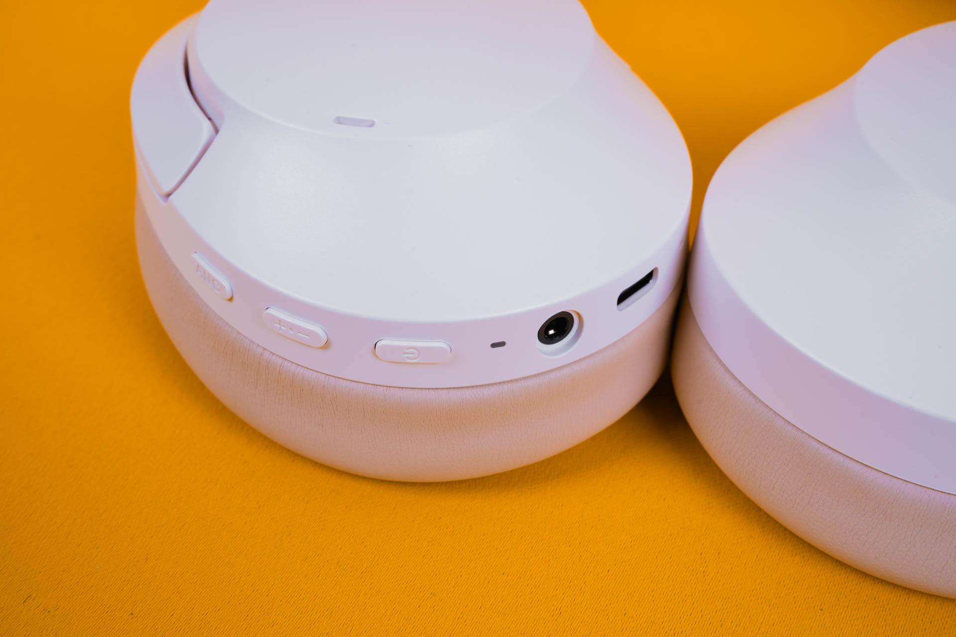 На правом наушнике находятся элементы регулировки звука, кнопка для управления шумоподавлением, порт для зарядки и разъём для подключения.