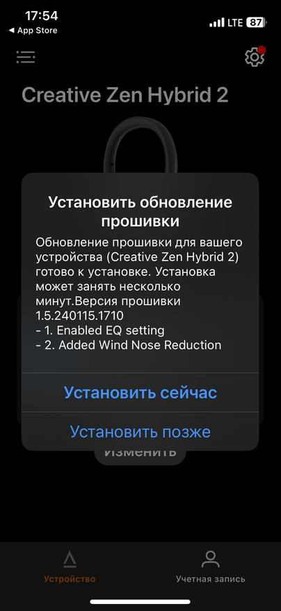 Гарнитура управляется через приложение производителя. При первом подключении была обновлена версия прошивки. В приложении можно выбрать пресет эквалайзера. Здесь представлена большая подборка пресетов, оптимизированных для различных жанров. Технология подавления шума имеет несколько режимов работы, а также можно включить снижение уровня шума от ветра.