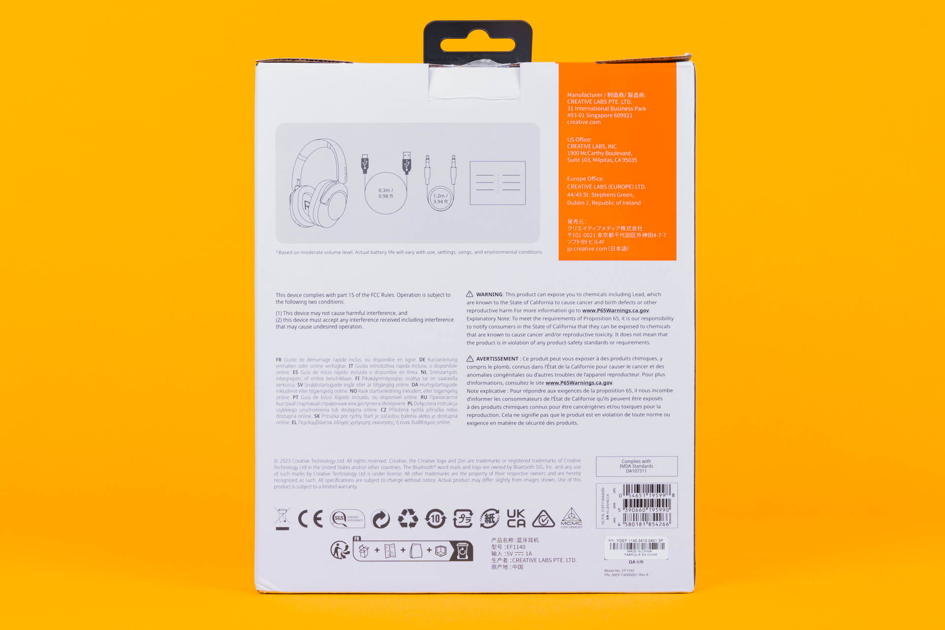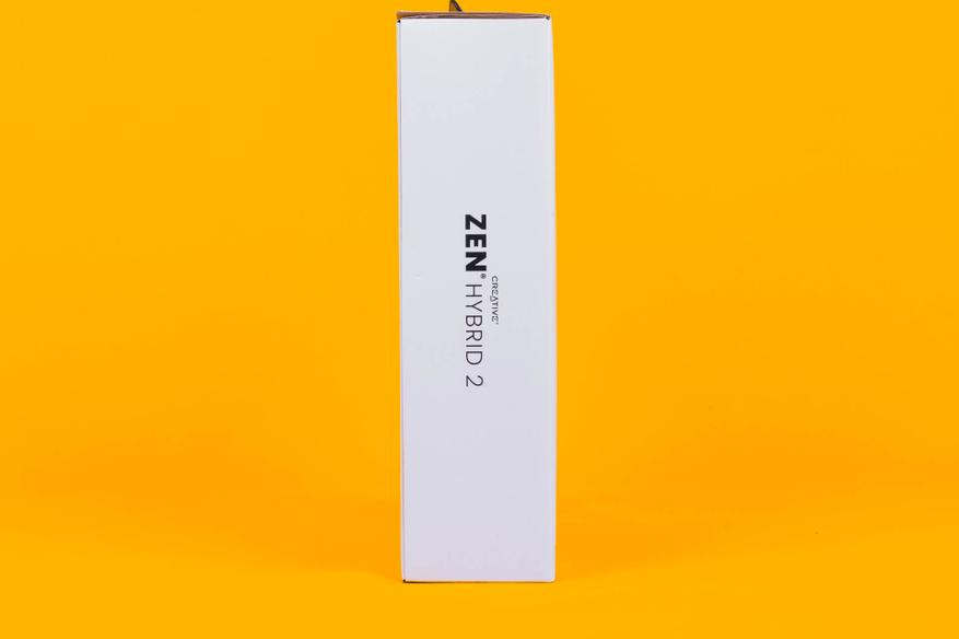 Наушники Creative Zen Hybrid 2 поставляются в упаковке из плотного картона. Лицевая сторона упаковки отдана под изображение самих наушников. В левом верхнем углу находится логотип компании Creative и название модели. На тыльной поверхности упаковки можно найти сведения о том, что входит в комплект.