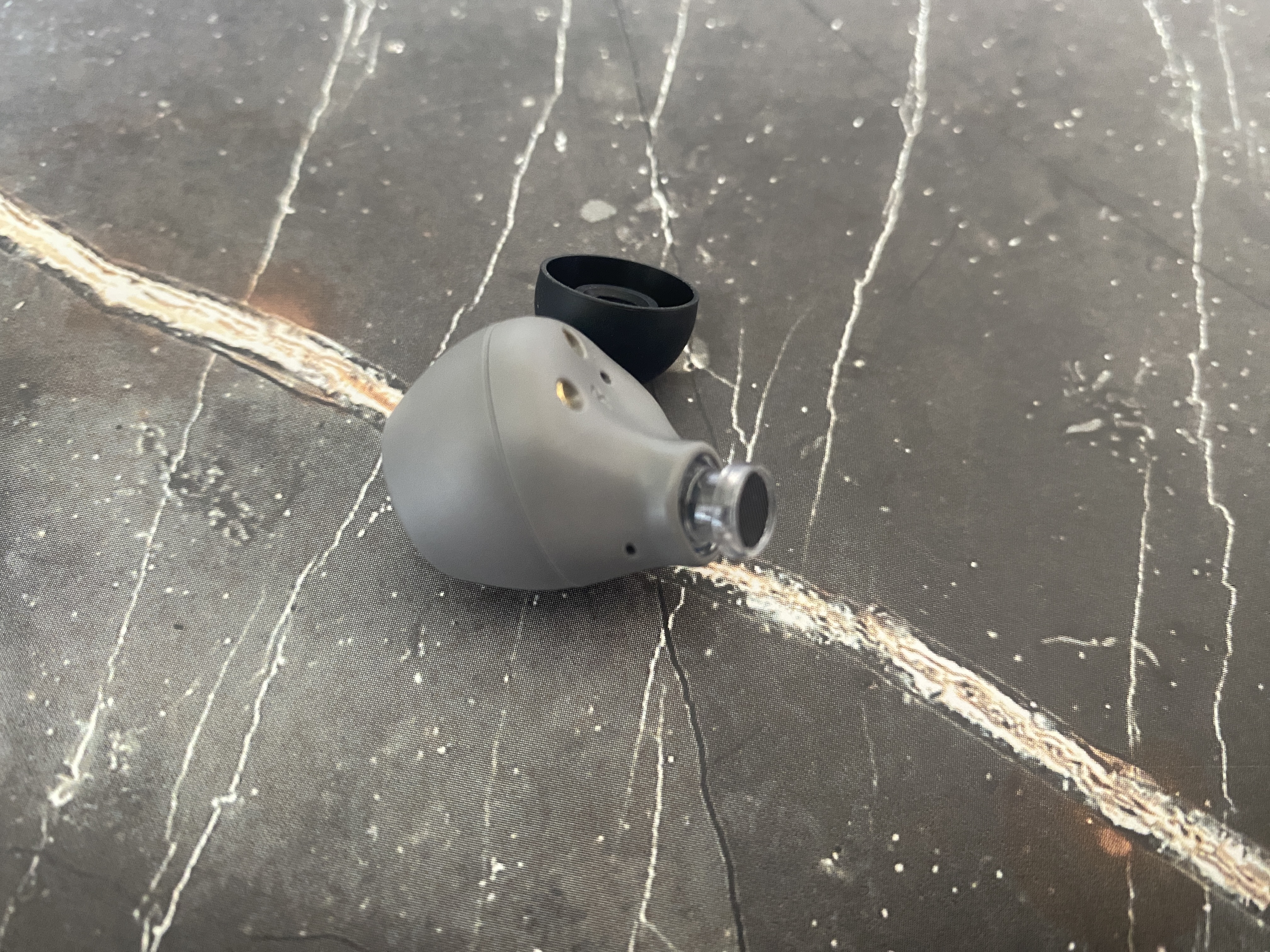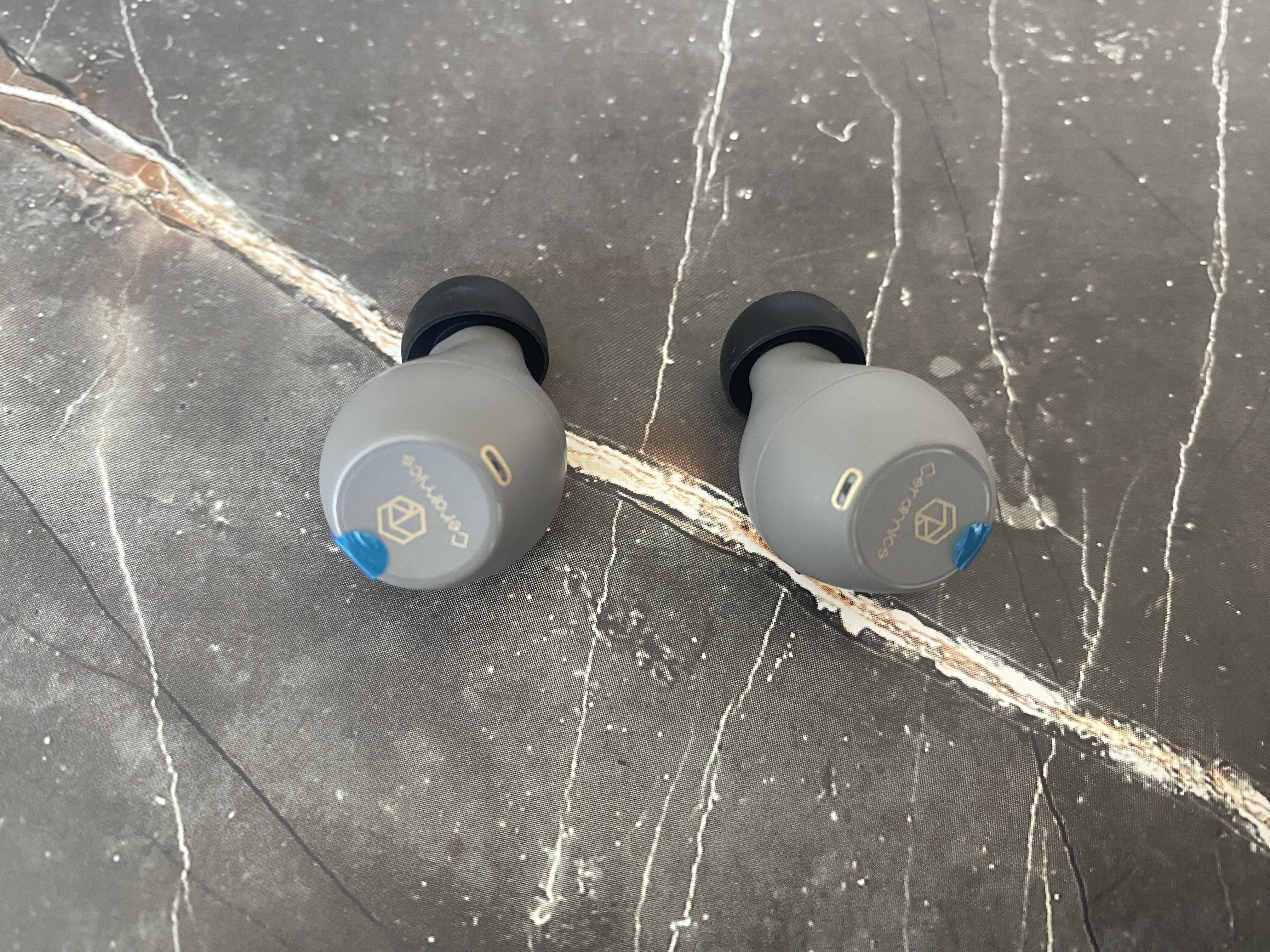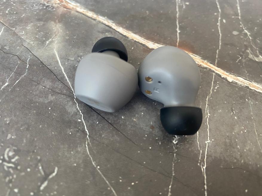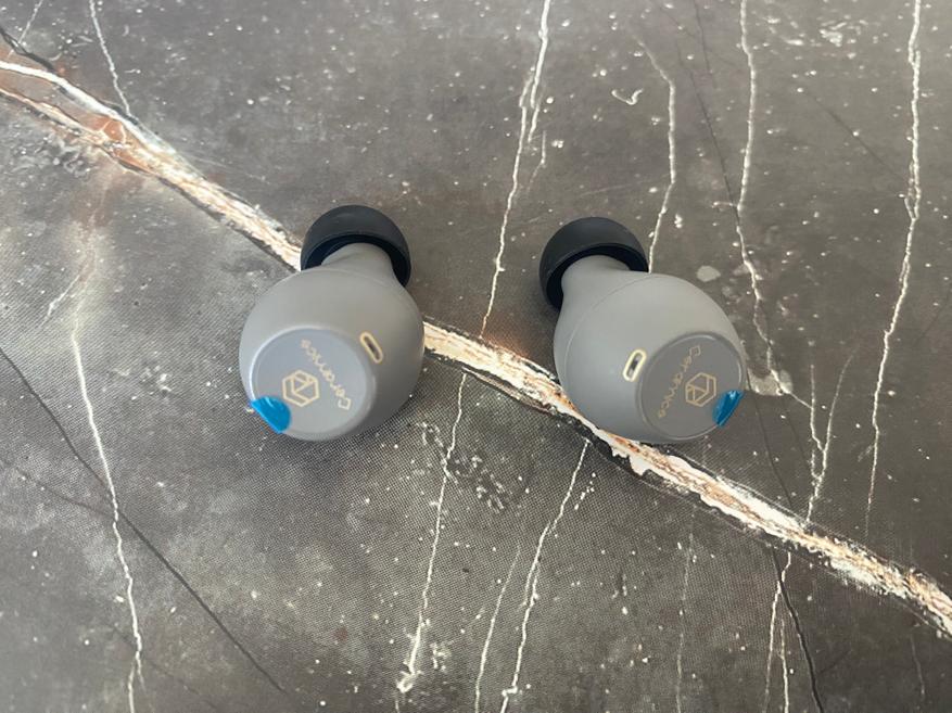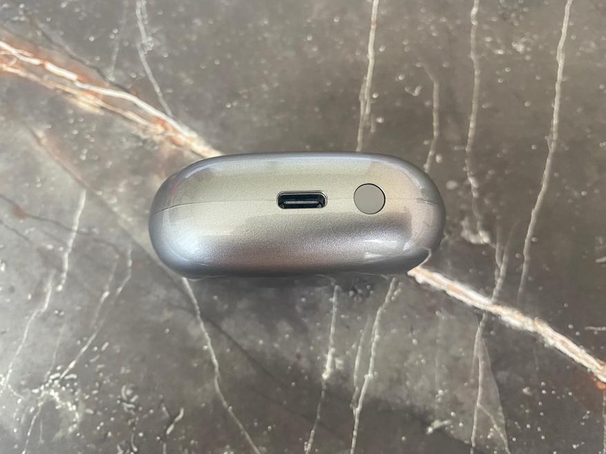 Кейс для зарядки очень гладкий и имеет только один светодиодный индикатор состояния, разъем Type-C для зарядки и кнопку коммутации. Внутри кейса наушники отлично удерживаются при помощи магнитов и можно не волноваться, что наушники вываляться при открытии крышки кейса. Наушники выполнены в форме бочонка и имеют контакты для зарядки, светодиодный индикатор работы, отверстие микрофона, также на наушниках есть сенсорная панель, благодаря которой и происходит управление всеми необходимыми функциями. Благодаря защите IPX5, больше не стоит переживать о попадании воды на наушники.