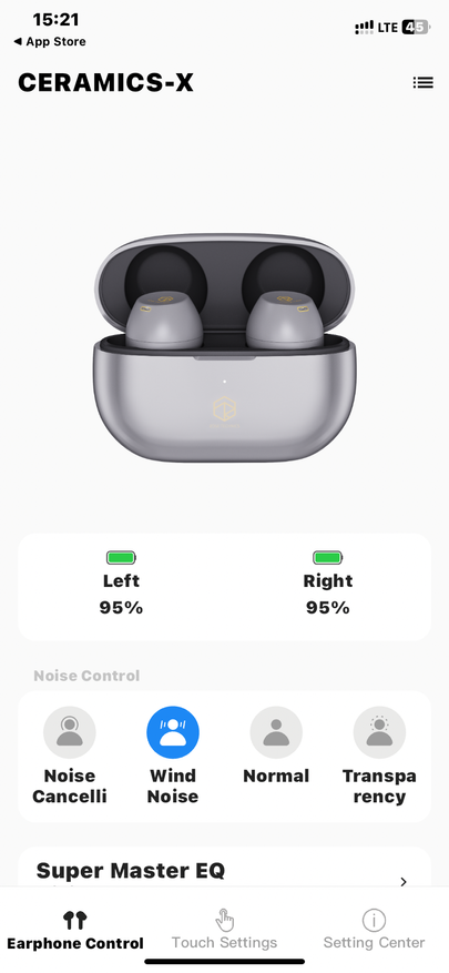 У наушников имеется также программное обеспечение, которое можно скачать из любого магазина приложений. В приложении есть очень много индивидуальных настроек и режимов, но единственно к чему можно придраться, так это — отсутствие русского языка. Открыв приложение можно не только настроить звучание, но и контролировать уровень заряда аккумулятора, причём каждого наушника в отдельности.