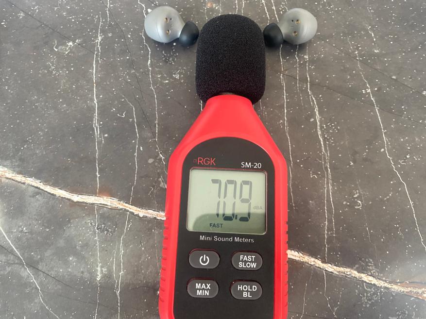 На максимальной громкости наушники выдают 70.9 dB, на самом деле, громкости вполне достаточно и скажу даже больше, что выставлять громкость на максимум нет никакого смысла.